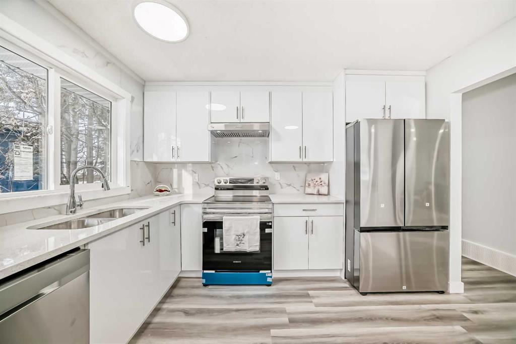 Welcome to this beautifully renovated and thoughtfully updated home, perfectly situated in the family-friendly community of Dover. Offering just shy of 1,100 sq. ft. on the main level and a total of 5 bedrooms and 2 full bathrooms, this property delivers exceptional comfort, functionality, and versatility for homeowners and investors alike. Step inside to a bright and inviting living room, where large windows fill the space with natural light and highlight the modern LVP flooring that flows seamlessly throughout the main level. The adjoining dining area provides an ideal space for family dinners or hosting guests, with easy access to the fully updated kitchen. Offering an attractive blend of style and efficiency, the kitchen features sleek, high-gloss cabinetry, quartz countertops, and stainless steel appliances, creating a fresh, contemporary look that will appeal to any modern homeowner or tenant. The main level is complete with three well-sized bedrooms, a beautifully renovated full bathroom, and the convenience of an in-suite stacked washer and dryer—making this space entirely self-sufficient. A separate side entry leads to a spacious, self-contained illegal suite, providing excellent flexibility for extended family living or potential rental income. This lower-level suite includes two additional bedrooms, a full bathroom, a generous family room ideal for relaxing or entertaining, and a well-appointed kitchen. With its own dedicated laundry, the suite offers complete independence and privacy. Located in a prime area of Dover, this home offers easy access to major routes including 36 Street, 26 Street, 17 Avenue, and Peigan Trail—making commuting simple and convenient. Residents will appreciate being just minutes from shopping centers, transit options, schools, playgrounds, and numerous community amenities. Whether you're looking for a move-in-ready family home or a savvy investment property with excellent rental potential, this beautifully renovated home checks all the boxes. Don't miss the opportunity to make this exceptional property yours!