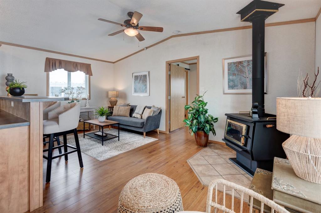 OPEN HOUSE SAT /SUN DEC 6 and 7, 2-4 pm both days. Enter into this immaculate and charming 2013, 1120 sf home located in the plus-18 section of Mountview. Prepare to be impressed with everything this home has to offer. It is spacious with vaulted ceilings, bright and airy with the many windows in the living area, and the entire home, and open concept living. Click on the interactive iGuide for a virtual tour and "virtual walk through". This large kitchen has beautiful wood cabinets, loads of counter space to explore your culinary side, prep for your cooking and baking adventures plus plenty of room to move around. Newly installed dishwasher, newer gas stove, newer fridge. There is a large counter peninsula island that provides even more space for eating or entertaining. Adjacent to the kitchen is a spacious dining area that is drenched in light. The living room has ample space for your furniture and the open den area provides a wood burning woodstove (WETT inspection done) to keep you warm and cozy. This is a 2013 model, 20x56, with two bedrooms, two bathrooms, and has everything you could need. The primary bedroom at the front of the home has a huge ensuite with soaker tub, separate shower, and good size vanity. This bedroom can easily accommodate a king bed. The second bedroom is at the opposite end, along with a 4-piece bath, large separate laundry room with a new on-demand hot water system and back entry hall. This home has a new composite vinyl fence, new skirting, new front deck, new eavestrough and downspouts, new sewer pipes, and a newly installed electrical hookup and meter, with a City of Calgary permit. Don’t wait to view this property - you won’t be disappointed! Lease approval is required. Pets are allowed with approval. Lease rate of $1100 per month includes water, sewer, garbage pick up and snow removal. Sunpark Mountview is across from Elliston Park, minutes to East Hills Shopping Centre, Stoney Trail, International Avenue, and all levels of transit, shopping, restaurants and amenities.
