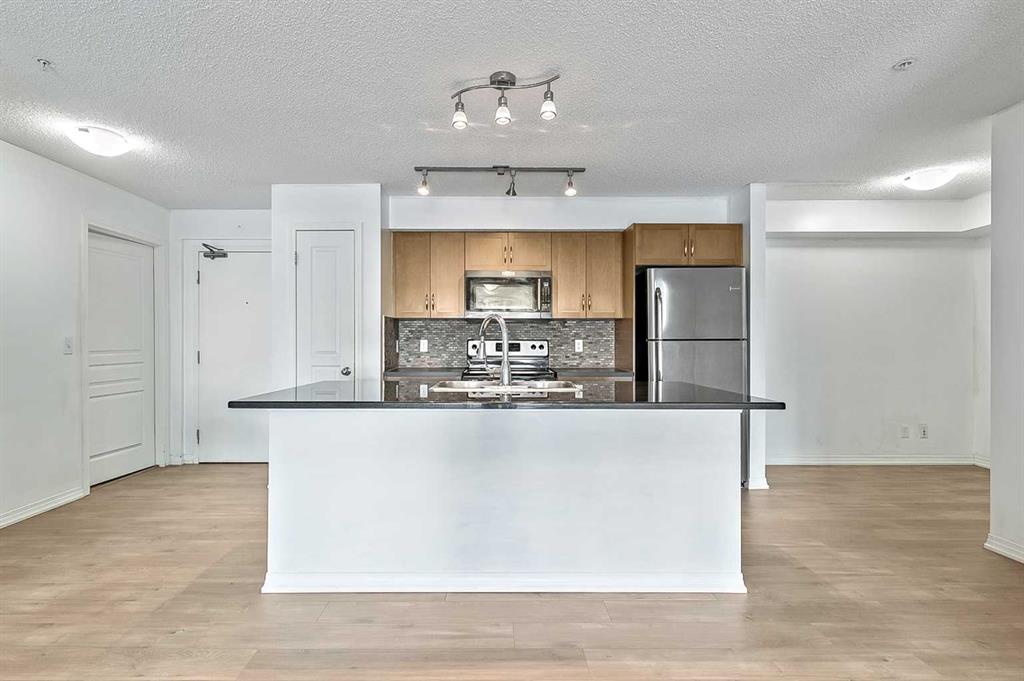 Priced to sell and move-in ready! This is one FABULOUS appointed 2 BED + DEN, 2 FULL BATH unit in a prime New Brighton location! Offering over 894 sq. ft. of bright, open-concept living, this impeccably maintained condo features a smart split-bedroom layout—perfect for roommates, guests, or anyone wanting extra privacy. The beautiful kitchen includes stainless steel appliances, cabinetry, a pantry, and a large island with granite counters and breakfast bar seating. The spacious living/dining area easily accommodates full-sized furniture and provides direct access to a private covered patio. Both bedrooms are generously sized with built-in closets and quick access to their own 4-pc bathrooms. A semi-private den offers an ideal work-from-home space. Additional highlights include in-suite laundry, in-unit storage, heated underground parking, and a separate storage locker. This well-managed building features landscaped grounds, visitor parking, and very reasonable condo fees. Located steps from countless amenities—grocery, dining, coffee shops, fitness, professional services, and the South Health Campus. Move-in ready and perfectly located—don’t miss this exceptional unit!