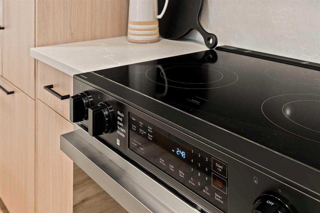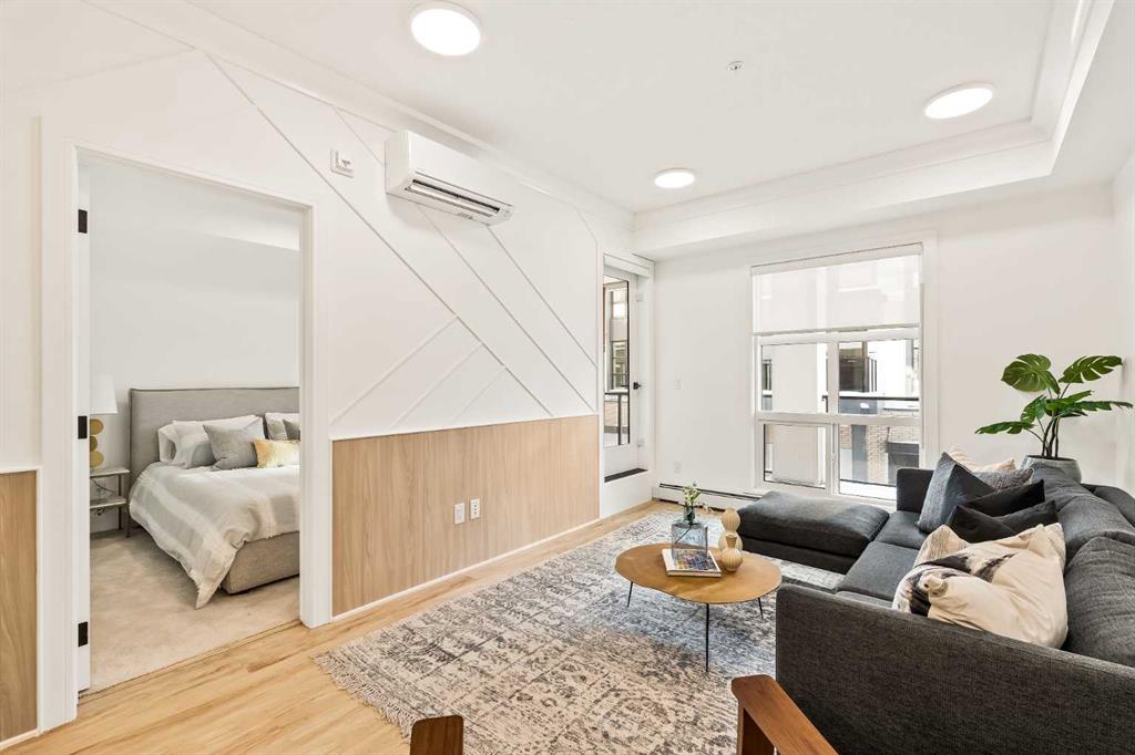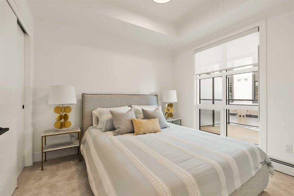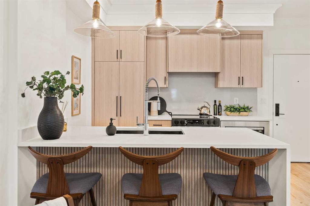 Exceptional value is offered with this brand new property that features nearly 500 square feet of living space and is situated in the central and amenity-rich community of the University District. This 1 bedroom, 1 bathroom condo features low condo fees, offering the perfect opportunity for first-time buyers, investors, or downsizers looking for maintenance-free living. Resilient luxury vinyl plank flooring greets you as you enter the home and flows throughout the main living area. This home offers an open-concept layout with 10-foot ceilings and large South-facing windows that flood the space with natural light throughout the day. The stunning kitchen features quartz countertops, a large peninsula with a waterfall edge and breakfast bar for additional seating, a built-in microwave, and an integrated refrigerator, dishwasher, and range hood, creating a clean and minimalist aesthetic. The kitchen overlooks the living and dining areas - making this the perfect space for entertaining friends and family. The spacious bedroom offers plush carpet underfoot, a double closet, and a large South-facing window. The 4-piece bathroom features a large vanity, a deep bathtub, subway tile backsplash throughout, a linen closet, and ceramic tile flooring. Step outside onto your oversized 178 square foot covered balcony that offers plenty of room for patio furniture, a barbecue, and even garden boxes for those with a green thumb. Additional features that round out this unit include air conditioning, in-unit laundry, and secure underground parking to keep your vehicle safe and out of the elements. This well-managed building offers secure bike storage, an EV vehicle charger, and visitor parking for your guests. Centrally located in the heart of the University District, this property offers the perfect walkable location and is only a short walk to nearby cafes, restaurants, shopping, entertainment, green space, the University of Calgary, Alberta Children's Hospital, and Market Mall. Within only a 5-minute walk you have top restaurants like OEB Breakfast Co., UNA Pizza + Wine, Native Tongues, and The Banquet. Daily commuting is easy with nearby public transit stops and quick driving access to Shaganappi Trail and 16th Avenue. This property offers the best value in the Dean’s Landing development based on it’s size and price point so don’t miss out on this incredible opportunity!