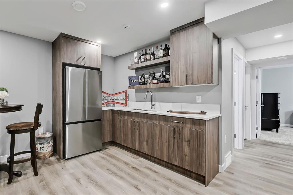**OPEN HOUSE THIS WEEKEND: SAT, DEC 6TH FROM 2-4 PM** Charm meets convenience in this well-maintained two-storey detached home in Mahogany, offering nearly 1,700 sq. ft above-grade space. In this award-winning 4-Season lake community, residents enjoy exclusive access to 63 acres of water, private beaches, a kids' splash park, 22km of pathway & 74 acres of restored wetlands. Inside, a bright foyer with a convenient front closet and very discreet powder room leads into the open-concept main floor. This sought-after central kitchen design offers stainless steel appliances, a central island with bar seating, granite countertops, a tiled backsplash, ample cabinetry, and generous prep space. A cozy, carpeted den, just off the dining area, complete with large windows and built-in shelving, creates a versatile space for a home office, with enough room for both partners to work from home or use it as a playroom, study nook, or reading spot. The living area is filled with natural light thanks to the oversized windows and features a gas fireplace framed with tile and custom wood detailing. The large mud room is perfect for kids loading and unloading from the oversize deck and garage. This home also includes central A/C for year-round comfort. Upstairs, the primary suite offers a peaceful retreat with a large walk-in closet and a spa-inspired 5-piece ensuite featuring dual sinks with granite countertops, a soaker tub, and a tiled walk-in shower. Two additional bedrooms, a 4-piece bathroom, and a dedicated laundry room with storage space for cleaning supplies complete the upper level. The fully custom-designed and developed basement adds even more living space, including a spacious rec room with a cozy fireplace, an extended wet bar with quartz counters and a brand-new full-size fridge, a comfortable 4th bedroom, and a modern 3-piece bathroom. This $40,000 development also included ceiling sound bars for enhanced sound mitigation. The basement is fully insulated and features abundant storage, including large storage rooms ideal for seasonal items, gear, and household extras. Outside, enjoy an amazing backyard on the street's largest lot, with no neighbours behind you, featuring a large deck, a storage shed, plenty of space to relax, play, or garden, and a nearly 550 sq. ft. double detached garage offering insulated, heated parking and additional storage. The garage is oversized with a valued section perfect for bikes, tools, or game meat. The paved back lane keeps vehicles and garage floors cleaner year-round. The exterior also features Gemstone lights for customizable seasonal lighting. Set in Mahogany, one of Calgary’s most desirable lake communities, this home is close to parks, pathways, shops, dining, and year-round recreation. This is a perfect opportunity to own a warm, welcoming home in a vibrant neighbourhood.