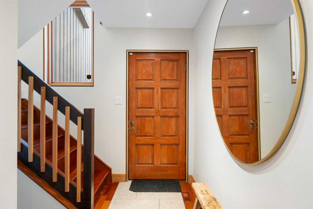 Welcome to a rare find — a home that offers beautiful views of sunrises and downtown yet feels tucked away in nature conveniently situated in the popular neighbourhood of Coach Hill. Surrounded by mature trees , and framed by open sightlines from every window, this one-of-a-kind property blends modern design, and warmth in a 5-level split layout that feels both expansive and effortlessly livable. Every detail has been thoughtfully selected: Brazilian hardwood floors, recycled-glass countertops, vaulted ceilings, exposed beams, and premium Miele appliances bring craftsmanship and character to the forefront. The top-level primary suite is your private retreat. With a wood-burning fireplace, a cozy sitting area, a workspace that opens to the floor below, a spa-like ensuite with a jetted tub, and a beautifully designed custom closet, this wonderful space invites you to unwind and recharge. Entertaining flows naturally in the open concept living, dining, and kitchen level. French doors lead out to an impressive two-tier cedar deck (over 300 sq. ft.) complete with a gas line—perfect for grilling, hosting friends, or enjoying quiet summer evenings under the canopy of trees. A matching cedar fence creates a private, enclosed yard. The main level offers two bright, welcoming bedrooms—one with direct access to a deck—and a 4-piece bath. Just below grade, a spacious theatre/playroom with large windows creates the perfect space for movie nights, game days, or a vibrant kids’ zone. The lower mudroom adds functionality and comfort with heated floors and direct access to the attached rear-drive garage. This home is freshly painted with a new hot water tank and air conditioning. Set beside a quiet, peaceful green space, this home offers a combination of design, warmth, privacy, and convenience doesn’t come along often—don’t miss the opportunity.