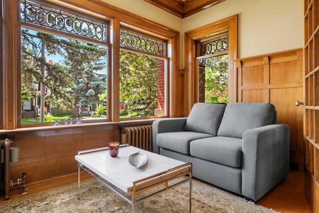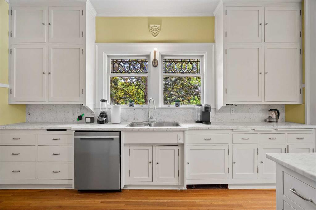 Situated in the heart of Calgary’s renowned Cliff Bungalow neighborhood, combines historic charm with modern comfort and unbeatable convenience. Explore vibrant restaurants, cafés, boutique shops, and the lively energy of 4th Street and 17th Avenue, while scenic river pathways, downtown amenities, and everyday conveniences are all just steps away. The home is also just a short walk from Western Canada High School, one of the city’s top public schools offering the International Baccalaureate (IB) program, —making location one of the home’s greatest highlights. This rare 5-bedroom home with 10ft ceilings features thoughtful upgrades, including a fully refreshed wrap-around verandah with new wood flooring, updated venting pipes, refinished kitchen taps, basement has in floor heating, a mostly new hot water tank, new basement flooring. The boiler has been replaced with an efficient model. and a new cedar shake roof was installed in 2019 at a cost of over $60,000, All old knob-and-tube wiring has been removed and replaced with modern electrical systems and a steam shower for added modern comfort . All original main-floor woodwork has been carefully cleaned and refinished with high-gloss varnish, preserving its historic integrity. Each room features individual thermal control, with a total of 8 thermostat-controlled zones throughout the house, ensuring personalized comfort in every space. Over $200,000 in renovations give this cherished historic home a renewed appearance that honors its heritage while offering modern functionality and comfort.