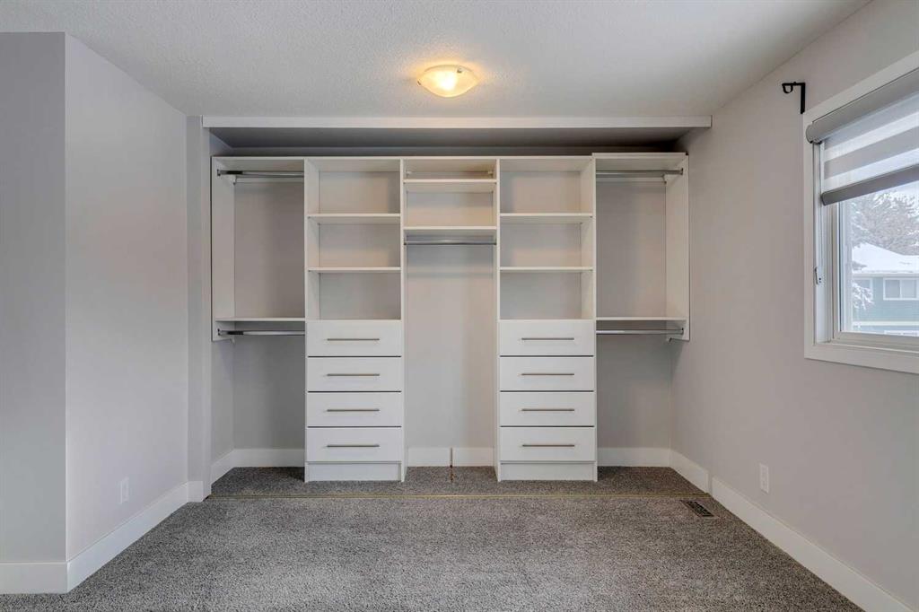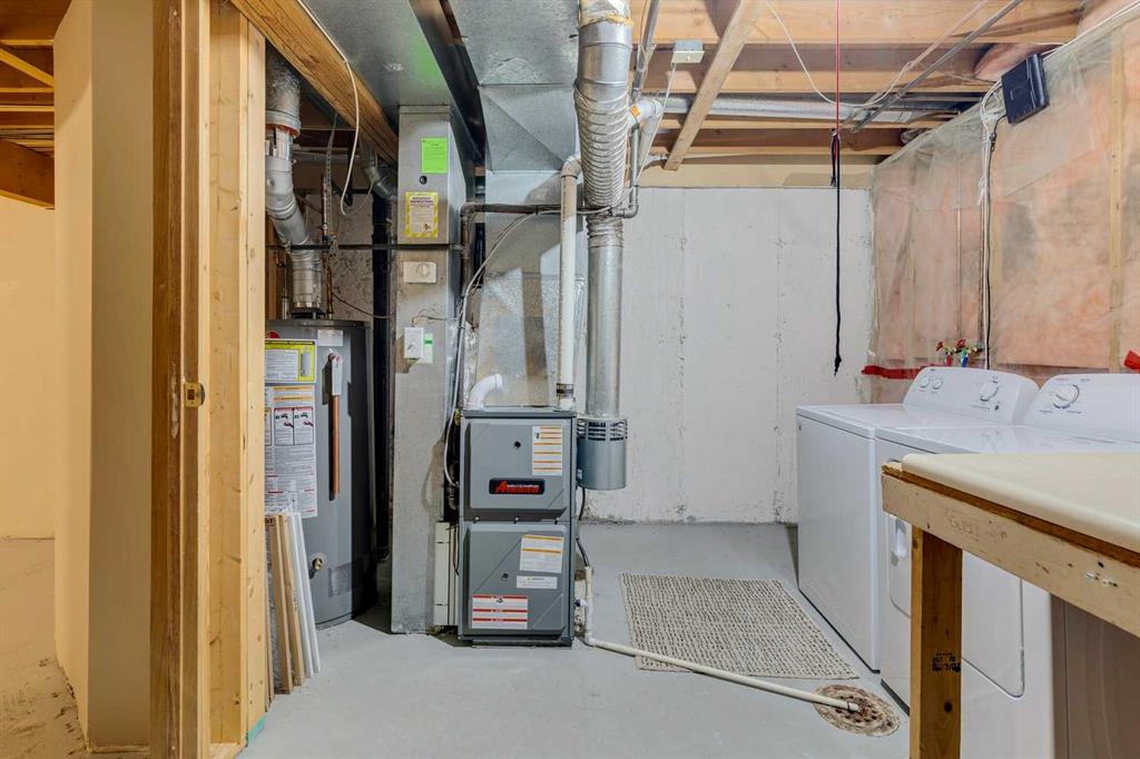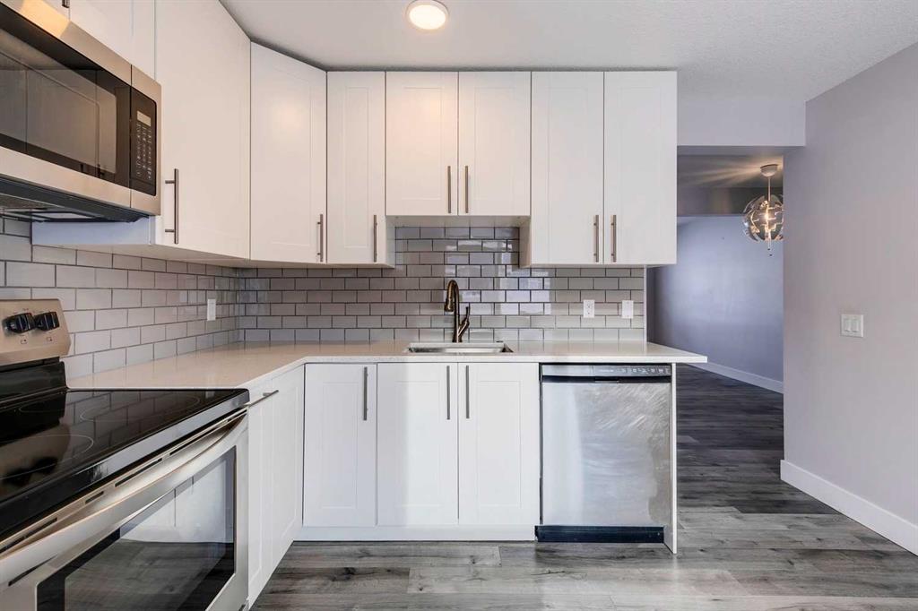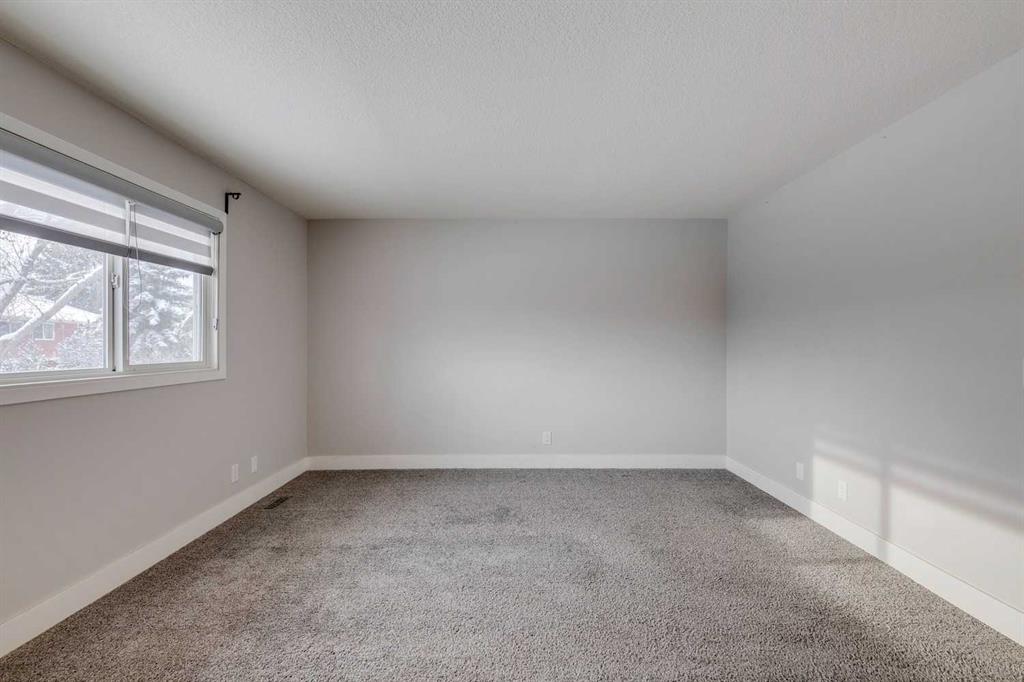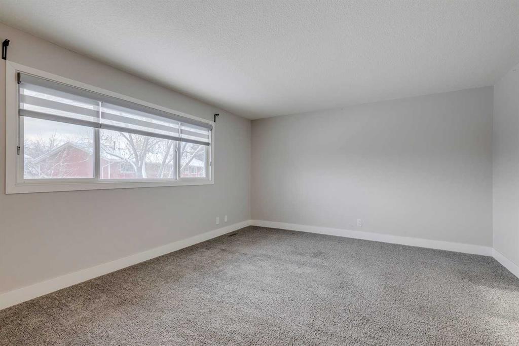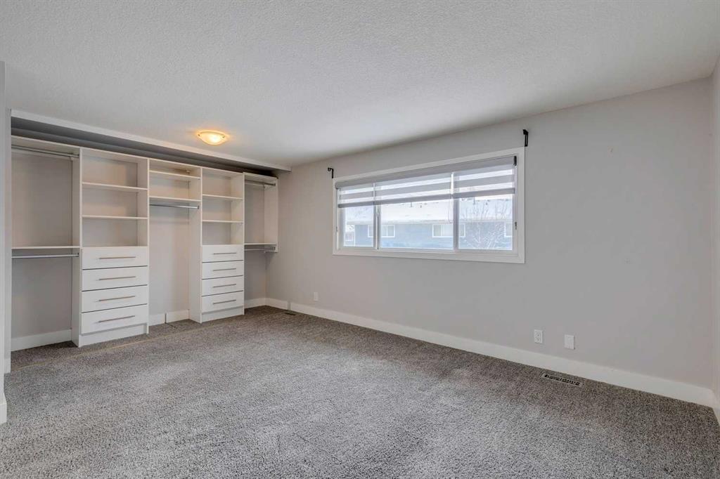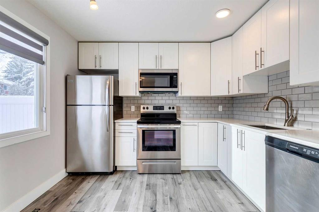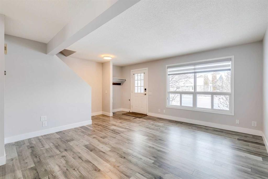 Wonderfully renovated townhome offering a bright and welcoming living space with modern laminate floors, fresh paint, and a beautifully updated kitchen featuring newer white cabinets, quartz counters, and stainless appliances. The upstairs has a renovated bathroom and three large bedrooms, including a huge primary suite with a custom built-in closet. You’ll love the private fenced yard that backs right to a greenspace. The large unfinished basement provides plenty of storage, and the furnace and water heater are approximately six years old. This well-maintained complex has seen major updates over the past decade, including windows, doors, roof, siding, and newer vinyl fencing, and the condo fees include water. There is an assigned parking stall right out from of this home. This townhome is ideally located in Queensland, just a short walk from Fish Creek Park with its endless pathway system and access to the Bow River. Commuting is convenient with quick access to Deerfoot Trail, and families will appreciate having several schools close by. Ready for a quick possession.