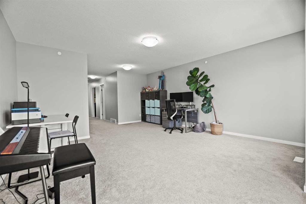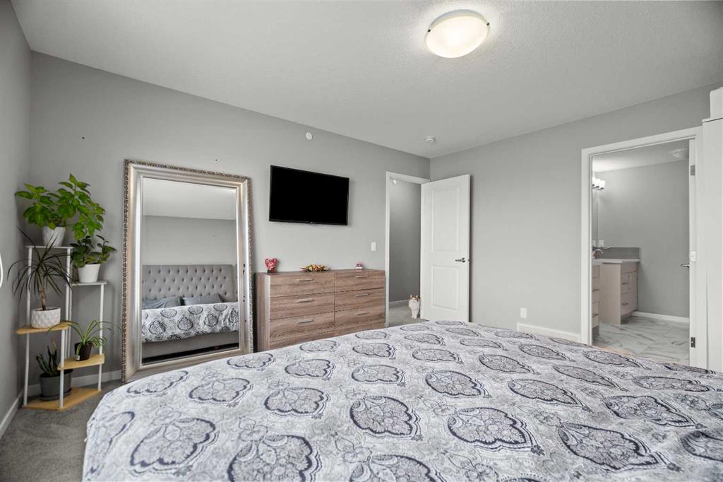 Welcome to this exquisite and fully developed home in the sought-after community of Livingston, offering 3 bedrooms, 3.5 bathrooms, a double attached garage, great back yard with large trees for privacy and over 2,600 sq. ft. of beautifully maintained and thoughtfully upgraded living space. With extensive recent improvements—including brand-new siding and shingles, fresh interior paint, upgraded lighting, central A/C, and a finished garage. From the moment you arrive, the charming curb appeal sets the tone for what awaits inside. Step into a bright, spacious foyer that flows seamlessly into the sun-drenched main floor, designed with both functionality and style in mind. The open-concept layout features gleaming flooring, large dining area, and an expansive living room highlighted by a chic, cozy fireplace that creates the perfect ambiance for everyday living or hosting guests. The gourmet chef’s kitchen is a standout, offering premium stainless steel appliances, quartz countertops, a massive center island ideal for entertaining, abundant cabinetry, a tiled backsplash, and a convenient corner pantry. Whether you’re preparing family meals or gathering with friends, this kitchen delivers exceptional space and comfort. Sliding patio doors lead to the beautifully treed sunny backyard, complete with a large deck and full fencing—perfect for relaxing, barbecuing, or children and pets to play. A well-appointed mudroom off the garage and a stylish 2-piece powder room complete the main level. Upstairs, you’ll find an impressive bonus/family room that provides an additional living space for movie nights, a play area, or a home office. The thoughtfully designed upper level also includes, a full 4-piece bathroom, and a spacious laundry room for added convenience. The luxurious primary suite serves as your private retreat, offering a walk-in closet and a spa-inspired 4-piece ensuite with modern finishes. The fully developed basement adds even more value with a large recreation room, a 3-piece bathroom, ample storage, and flexibility for future customization—whether you envision a home gym, hobby room, or additional guest space. Outside, the double attached garage is fully finished, and the driveway provides room for additional parking. The landscaped yard offers both beauty and privacy, making it an ideal space for outdoor enjoyment. Located in the vibrant community of Livingston—with access to the popular Community Hub, Splash Park, playgrounds, parks, green spaces, walking / bike paths, and excellent amenities—this home provides exceptional convenience with quick access to major roadways, shopping, restaurants, and public transportation. This stunning, move-in-ready property truly has it all—style, space, upgrades, location, and comfort. A must-see opportunity you won’t want to miss!