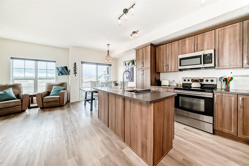 Step inside to a welcoming entryway that leads up to a sunlit, west-facing living area and kitchen—where large windows showcase sweeping mountain vistas that will take your breath away. Whether it’s a quiet morning coffee or an evening glass of wine on the deck, you’ll enjoy front-row seats to Cochrane’s finest sunsets and picturesque views. The main level features updated vinyl flooring throughout and a newer (2022) dishwasher and upgraded culinary sink. Step outside to your private balcony with plenty of space for grilling, relaxing and entertaining.