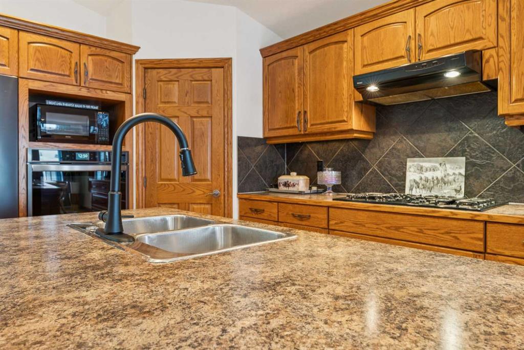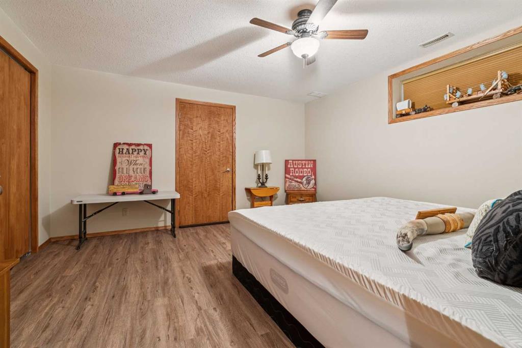 Discover the perfect blend of quiet country living and modern comfort in this beautifully maintained bungalow tucked away on a private cul-de-sac in the desirable community of Speargrass. Surrounded by friendly neighbours, peaceful green spaces, and endless amenities just minutes away, this home offers a relaxed lifestyle that’s hard to find. Step inside to find an inviting open floor plan designed for easy living and entertaining. The spacious kitchen flows seamlessly into the dining and living areas, while large windows fill the home with natural light and showcase the serene surroundings. Large primary bedroom with spacious ensuite, walk-in closet and direct access to back deck and yard. A second bedroom, full bathroom and a main floor flex room for home office, den or dining room complete the main floor. Downstairs offers a third bedroom, rec room, family room, full bathroom and large storage room. Enjoy recent updates including a new hot water tank(2023), and recent furnace and roof inspections (2025) for added peace of mind. Central Air Conditioning installed 2023. Main floor and stairway freshly painted(Dec 2025), In-ground sprinkler heads replaced 2025, fridge (2023), Dishwasher (2024), high efficiency toilets (2025). Outside, the backyard opens onto the kind of natural setting families dream of — backing on to 9th hole on the Speargrass Golf Club, a toboggan hill right out back, walking paths, and access to a large playground and dog park just steps away. Speargrass is known for its safe, close-knit atmosphere, featuring controlled community access, a school bus stop right outside, and friendly neighbours and a community board that organizes holiday celebrations and events for the community. Community amenities include: Clubhouse within walking distance, RV/vehicle storage for only $50/month, Excellent road and water maintenance year-round Weekly fresh-vegetable stand from the local Hutterite colony during the growing season, Fishing and camping spots nearby for weekend adventures, Convenient 10-minute access to groceries, restaurants, auto services, and more. With easy highway connections to Calgary, Okotoks, Strathmore, and Vulcan, Speargrass offers the perfect balance of peaceful privacy and accessibility. Whether you’re downsizing, starting fresh, or simply looking for a safe, friendly place to call home, this bungalow delivers it all. Private living. Great people. Small-town charm. Welcome home to Speargrass — where community still matters.