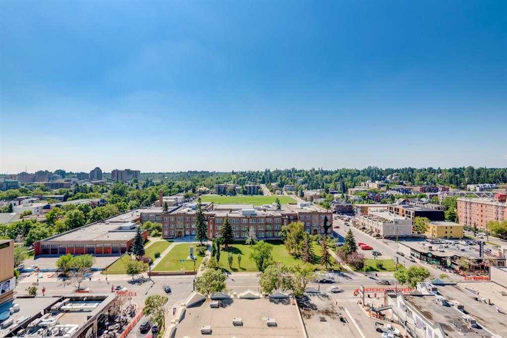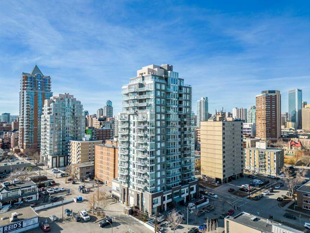 Step into pure sunshine living as this south-facing condo is all about good vibes and big skies, framed by open mountain views that hit you the moment you walk in. Your sun drenched patio stretches the full width of the unit and overlooks popular 17th Avenue + prestigious Mount Royal. Enjoy the open concept plan, wall to wall glass and wide-plank laminate floors. The kitchen serves up a dreamy colour palette with newly wrapped cabinets, quartz counters, stainless steel appliances, gas range, vertical tile and sit-up breakfast bar. Retreat to the cozy living area - the perfect perch to curl up, recharge and settle into your evening rhythm. The primary bedroom delivers a standout closet along with an additional spot for your entertainment hub. A stylish bathroom waits around the corner and yes, there's also in-suite laundry for ultimate convenience. At SMITH, lifestyle perks seal the deal: concierge service, an inviting owner’s lounge and proximity to all of your favourite coffee shops, restaurants, pubs + boutiques in a matter of minutes. Affordable, attractive and absolutely worth a look this holiday season.