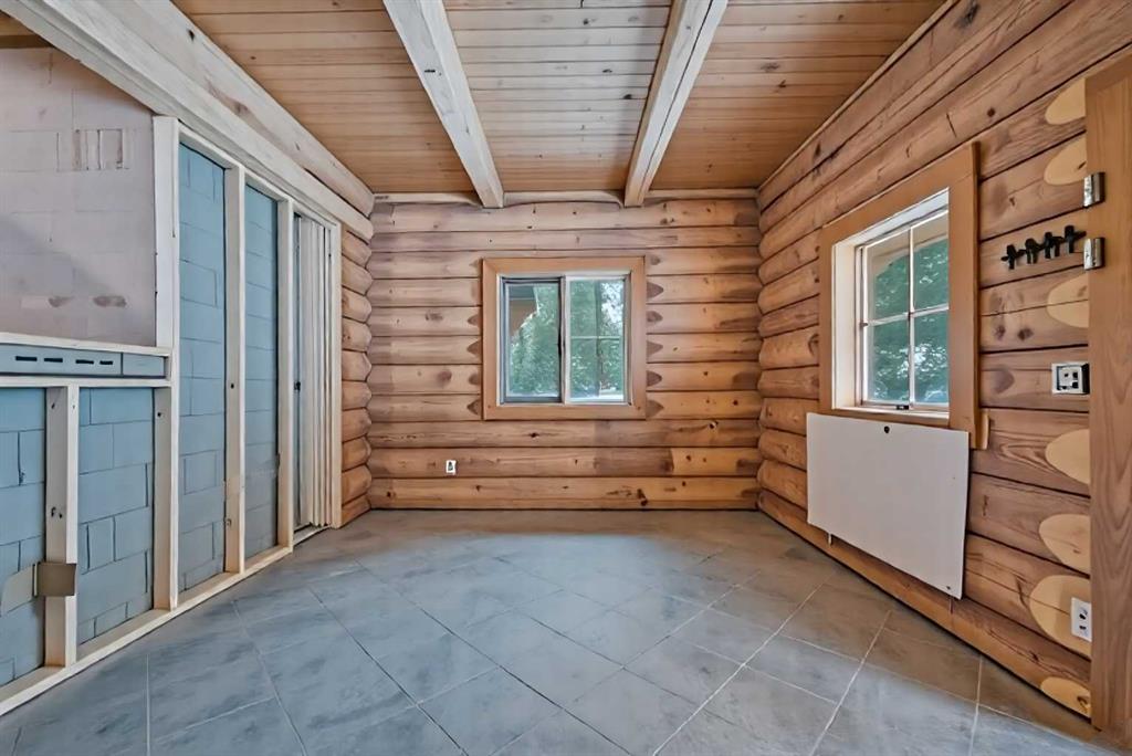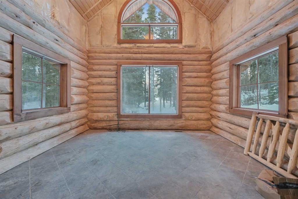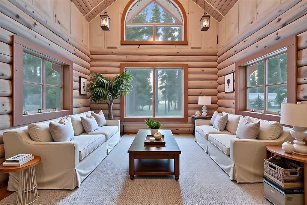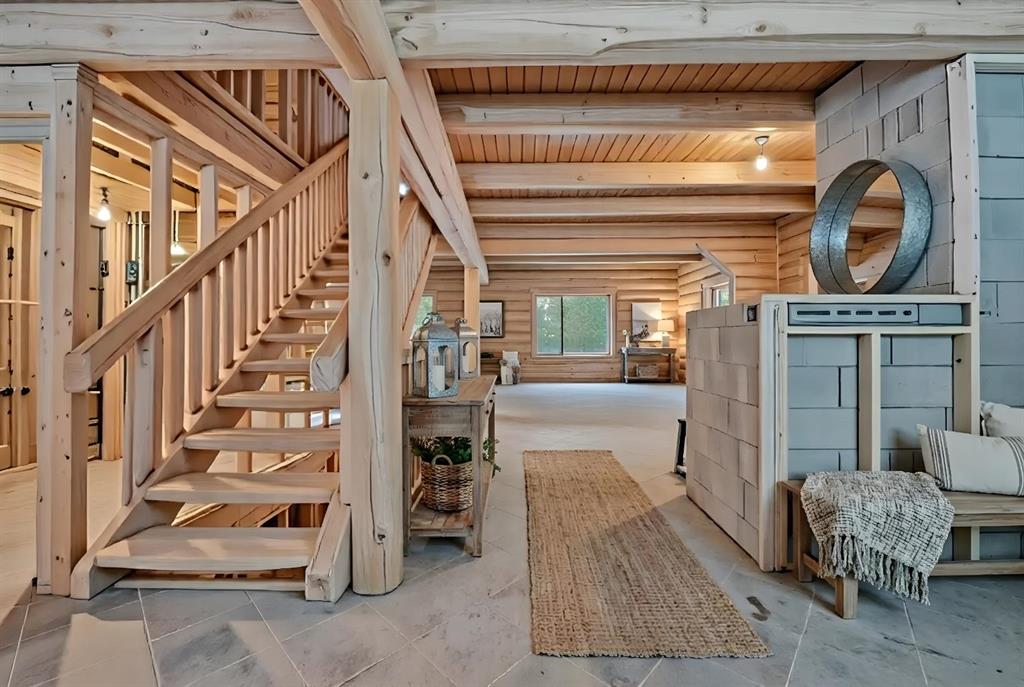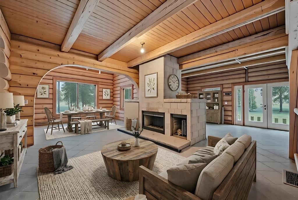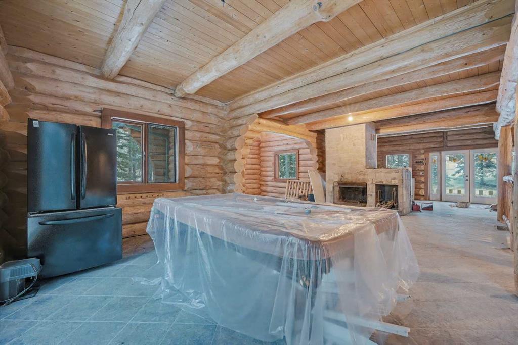 Additional features include a heated double garage, interior logs professionally dry ice–treated, a 20-year-old roof, and a pool table included with the sale.