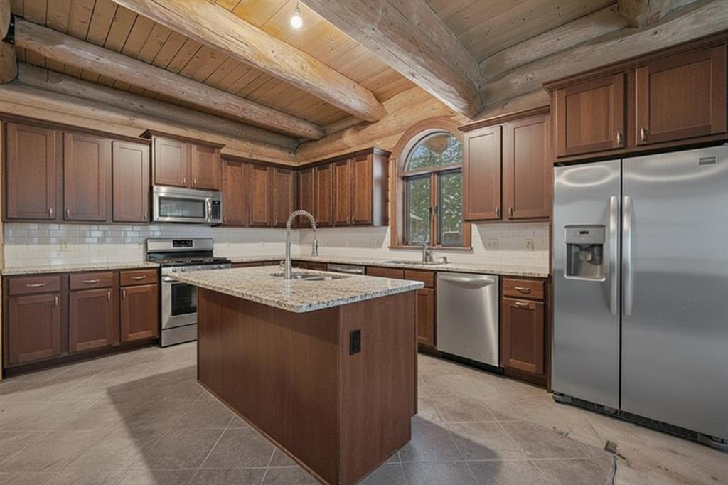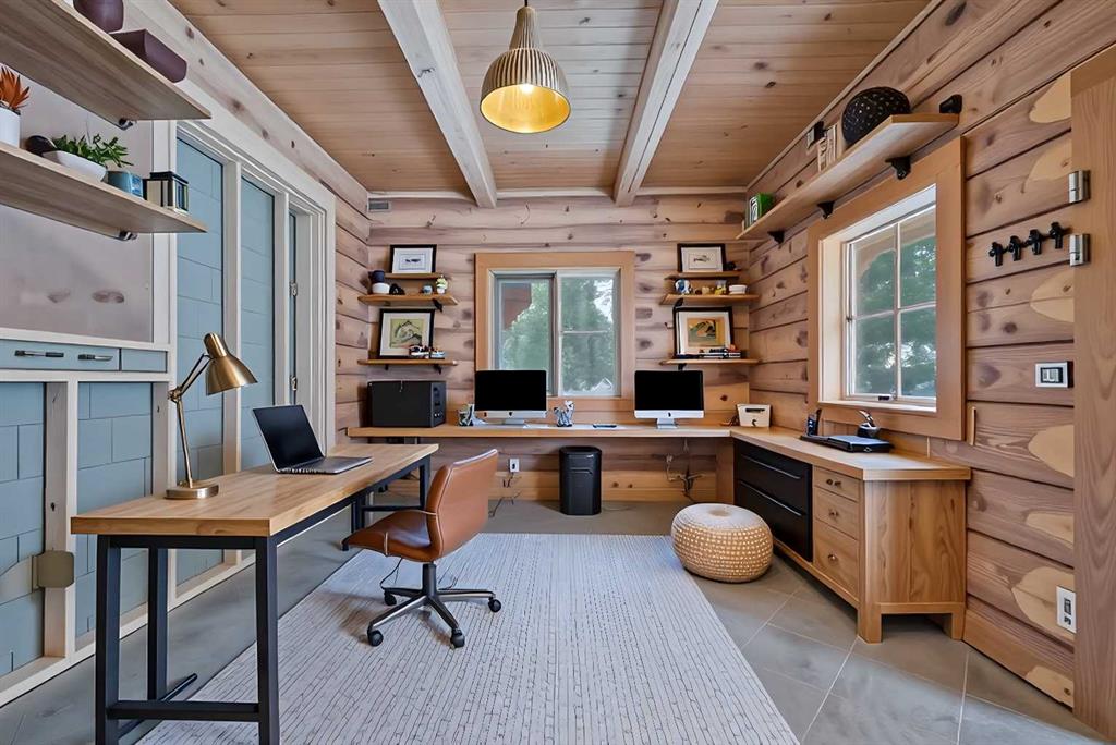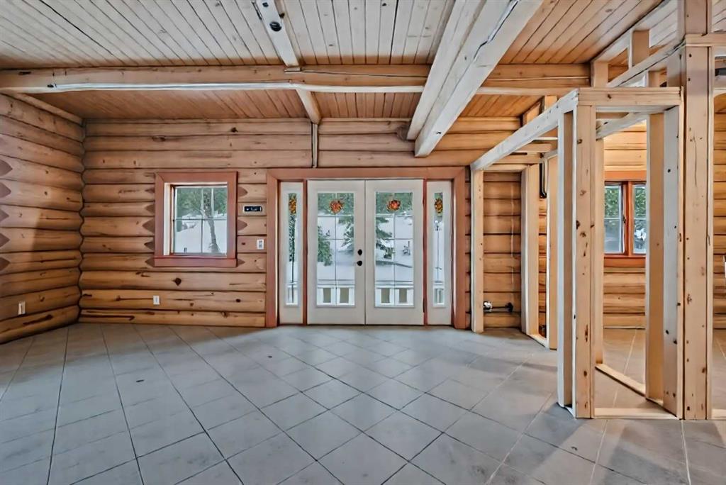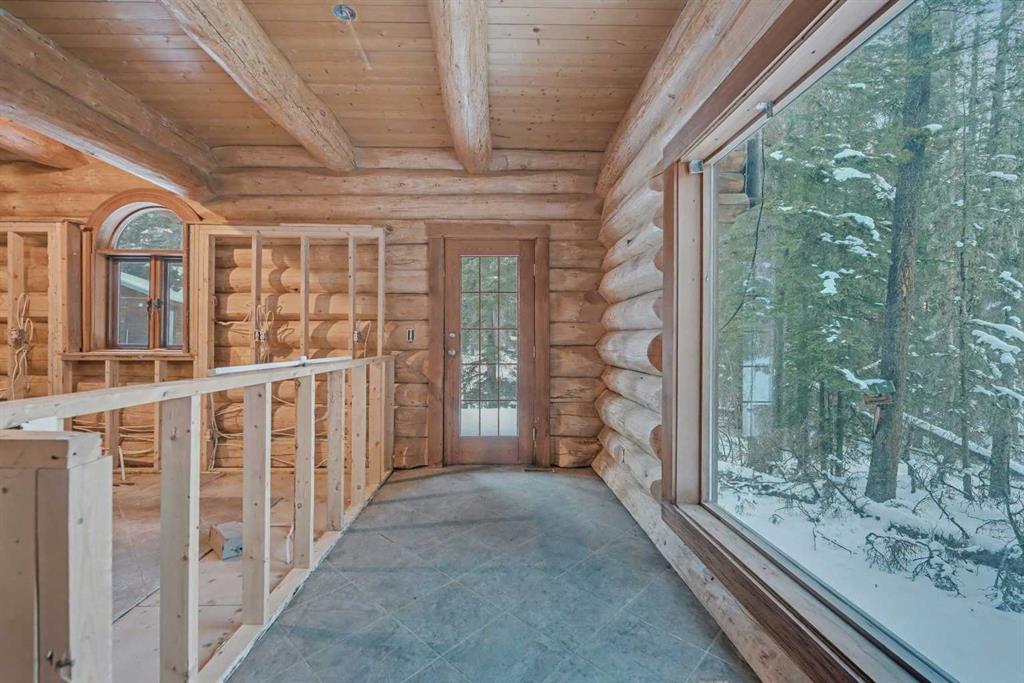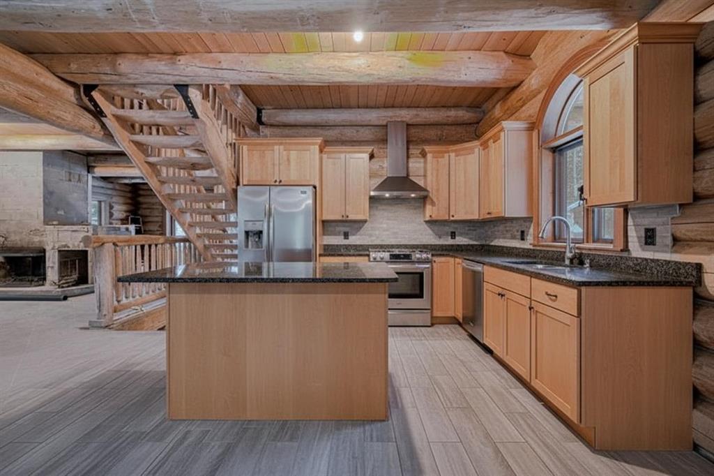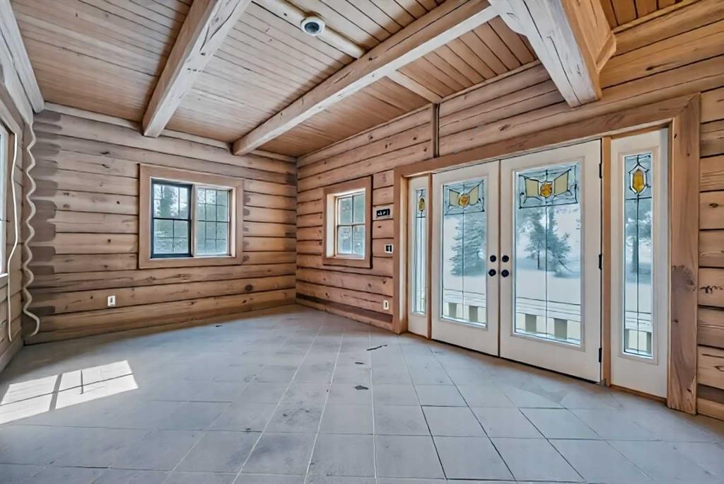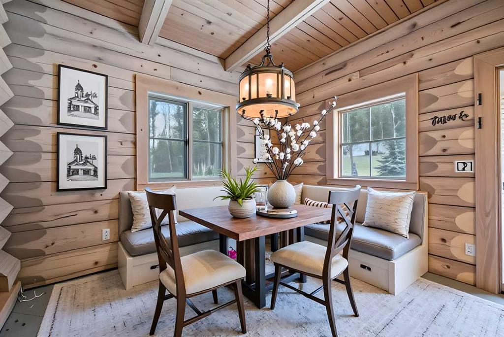 Additional features include a heated double garage, interior logs professionally dry ice–treated, a 20-year-old roof, and a pool table included with the sale.