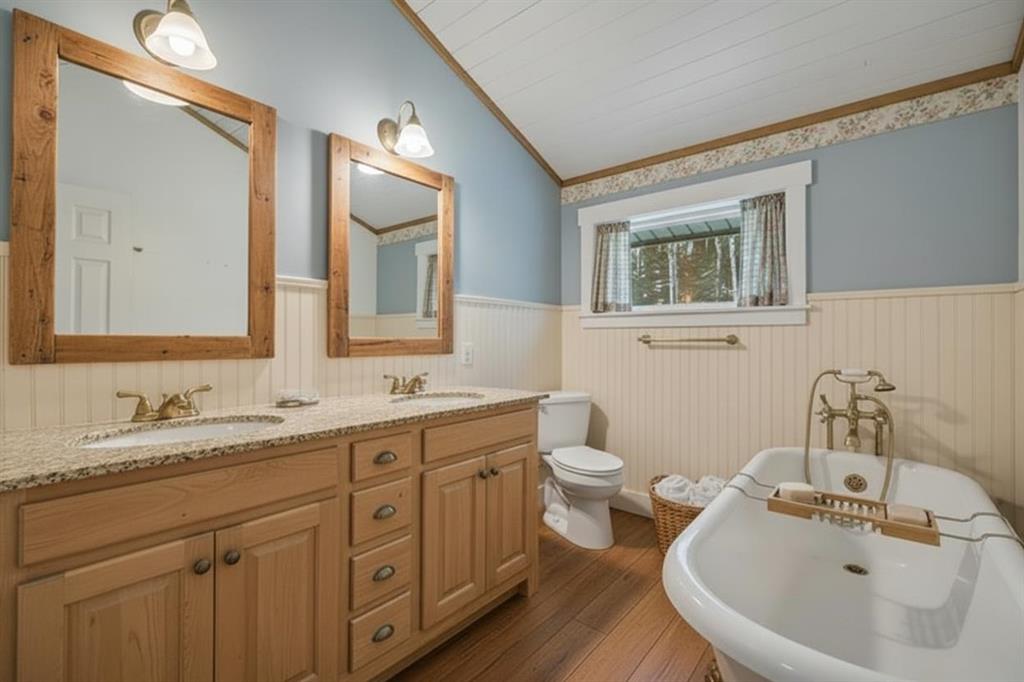 The home features a wood foundation and numerous recent improvements, including all plumbing lines replaced, a new main electrical line, and a new sump pump with updated lines. Heating is provided by a boiler-fed forced air system servicing both the main floor and basement, complemented by on-demand hot water supplying both domestic use and the heating system, servicing the upper floor bedrooms.