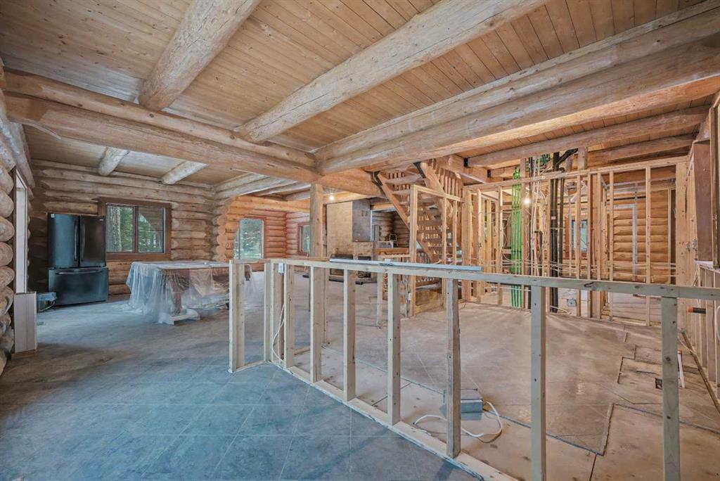 Welcome to 7 Elk Valley Gate in the highly sought-after and secluded Elk Valley Estates. Set on 2 acres, this property presents a rare opportunity for buyers seeking a customizable rural home with major infrastructure upgrades already completed. The interior has been professionally demoed following an insurance claim, creating a true blank canvas for renovation and redesign. The current layout features three bedrooms upstairs, each with a full bathroom, including an en-suite in the primary bedroom. The main floor features a vaulted ceiling in the living room, which is adjacent to the dining room and kitchen, that can be set up as an open concept. The front of the house offers a sitting area/office, a half bath, and a laundry room. The massive basement already has two bedrooms (one window is boarded up), with a third one framed and would just need a window cut should you wish to turn this into a 6-bedroom home. Make sure to check out the virtual tour and floor plan schematics for all the layout details.