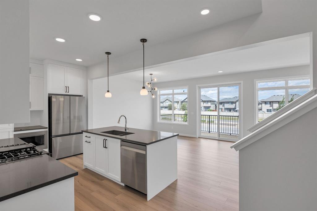 Welcome to this exceptional home built by McKee Homes, located in the highly desirable community of Lewiston. Designed with comfort, functionality, and upgraded features throughout, this property is perfect for families seeking modern living with thoughtful details. The home includes an impressive 23' x 26' oversized garage with ample space for large vehicles and additional storage. This added space is ideal for homeowners who value convenience and room to organize. The main floor is designed for versatility and ease of living. It features a spacious bedroom perfect for guests or multi-generational family needs, along with a full bathroom with a standing shower. The living and dining area has been expanded to a generous 28 feet wide, creating an open, bright space enhanced by a triple patio door that brings in abundant natural light. The electric fireplace, finished with tile to the ceiling, serves as a stylish focal point in the living room. The kitchen features a walk-through pantry and ample storage, making meal preparation simple and efficient. From the dining area, you can step directly onto the rear deck, offering a great space for outdoor relaxation. Upgraded railing on the stairs adds a clean and modern aesthetic to the main floor. The upper level continues to impress with a spacious lifestyle room featuring a beautiful tray ceiling, ideal for a media area, home office, or playroom. The owner’s suite offers another tray ceiling detail and includes a luxurious 5-piece ensuite with dual sinks, a soaker tub, and a standing shower. Two additional bedrooms and a well-appointed 3-piece bathroom complete the upper floor, providing comfort and convenience for the entire household. This home also comes with a side entrance, 9ft basement ceiling height and rough-ins in the basement.