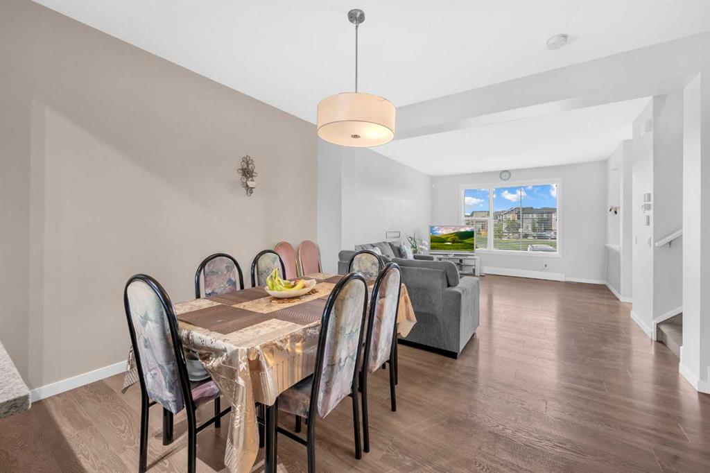 Welcome to Cornerstone, most desirable community in NE Calgary. This beautiful home boasts almost 1,600 sq ft of living space, located across the park and with huge backyard, featuring 3 spacious bedrooms and 2.5 bathrooms, perfect for families or those who love to entertain. The open floor plan on the main level is flooded with natural light, thanks to the large windows. The spacious living room perfect for enjoying quality time with loved ones, whether it's watching movies, playing games, or just hanging. The dedicated dining area can comfortably fit a 6-seat table, making it perfect for family dinners or social gatherings. The U- shape kitchen is a culinary dream, equipped with upgraded stainless steel appliances including new Refrigerator & electric stove, beautiful quartz countertops, and a breakfast bar for food preparation and casual dining. Upstairs, the spacious master bedroom is a serene retreat, complete with a walk-in closet and a 4-piece ensuite. Two additional generous-sized bedrooms and a 4-piece bathroom ensure that everyone in the family has plenty of space. The laundry area on this level adds convenience to the daily routine. The unfinished basement is a blank canvas, waiting for your creative ideas to bring it to life. House is located on a very quiet street and across the park perfect for families with young children. The huge backyard oasis has a deck with upgraded composite boards and a playground-sized yard, perfect for kids to run around and play. Located on a very quiet street across from a park, this rare find is close to shopping, parks, and has easy access to Stoney and Deerfoot trails, making it an ideal location. Contact your preferred realtor to schedule a viewing and experience this beautiful house for yourself.
