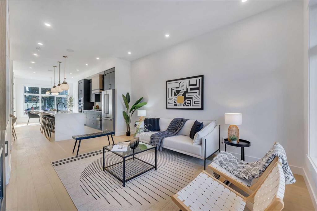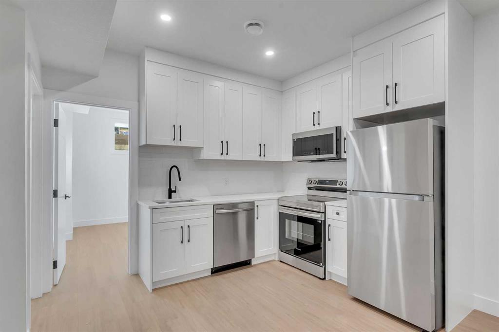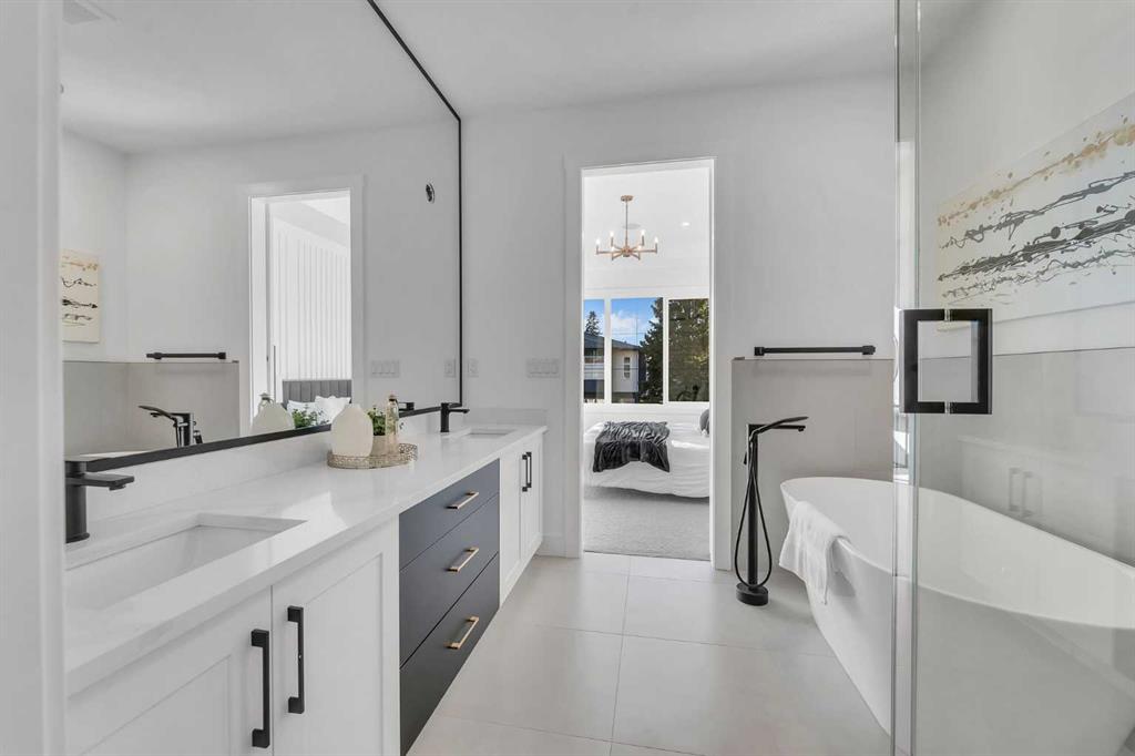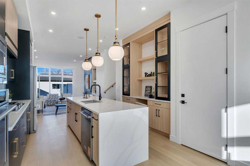 Welcome to Winston Heights Mountview! This modern infill comes with a legal basement suite with its own entrance and offers over 2250 sq. ft. of finished space. It features 5 bedrooms and 3.5 bathrooms, with high-end finishes throughout. The main floor has 10’ ceilings, big windows, an open dining area, and a stylish kitchen with quartz counters, a large island, and KitchenAid stainless steel appliances. The living room includes a gas fireplace, built-in shelves, and access to the patio. Upstairs you’ll find the primary bedroom with a 5-piece ensuite and walk-in closet, plus two more bedrooms, a full bathroom, and laundry. The basement has 9’ ceilings and a fully legal 2-bedroom suite with its own kitchen, living space, and laundry—great for family or rental income. This home also includes a double garage, downtown views from the front, and an excellent location close to schools, parks, shops, and just minutes from downtown. One of biggest backyards in this area.