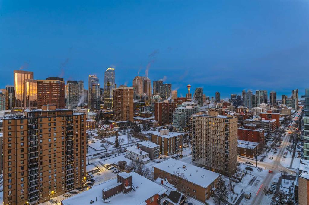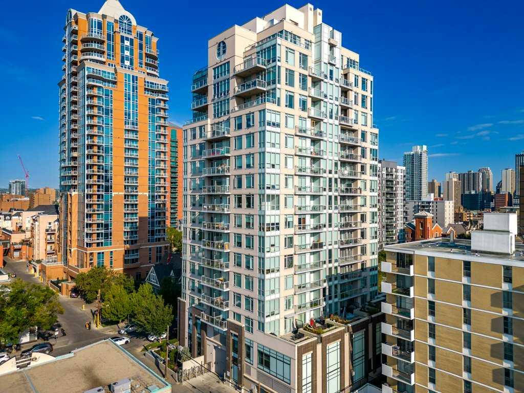 It's a CHRISTMAS MIRACLE: A million dollar view AND underground parking at Drake for under $260K! Sitting 150 feet up in the air looking out to the sparkling downtown skyline, you will feel right at home in this contemporary condo. Perfectly situated a block from 17th Avenue, providing instant access to all of the best restaurants, pubs, cocktail bars + coffee shops Calgary has to offer. Step inside to find an open concept floor plan, art feature wall, wood flooring + large windows. The fashionable kitchen shines with granite counters, stainless steel appliances, dark cabinetry + tile backsplash. Loads of great smart storage options throughout the space and also comes with in-suite laundry plus that coveted underground parking stall. Boasting a rare perfect Walkscore of 100, there is little convincing needed that this prime + central location is at the heartbeat of our city. Whether you're stepping into homeownership or strengthening your rental strategy, this condo delivers big value for a small cost.