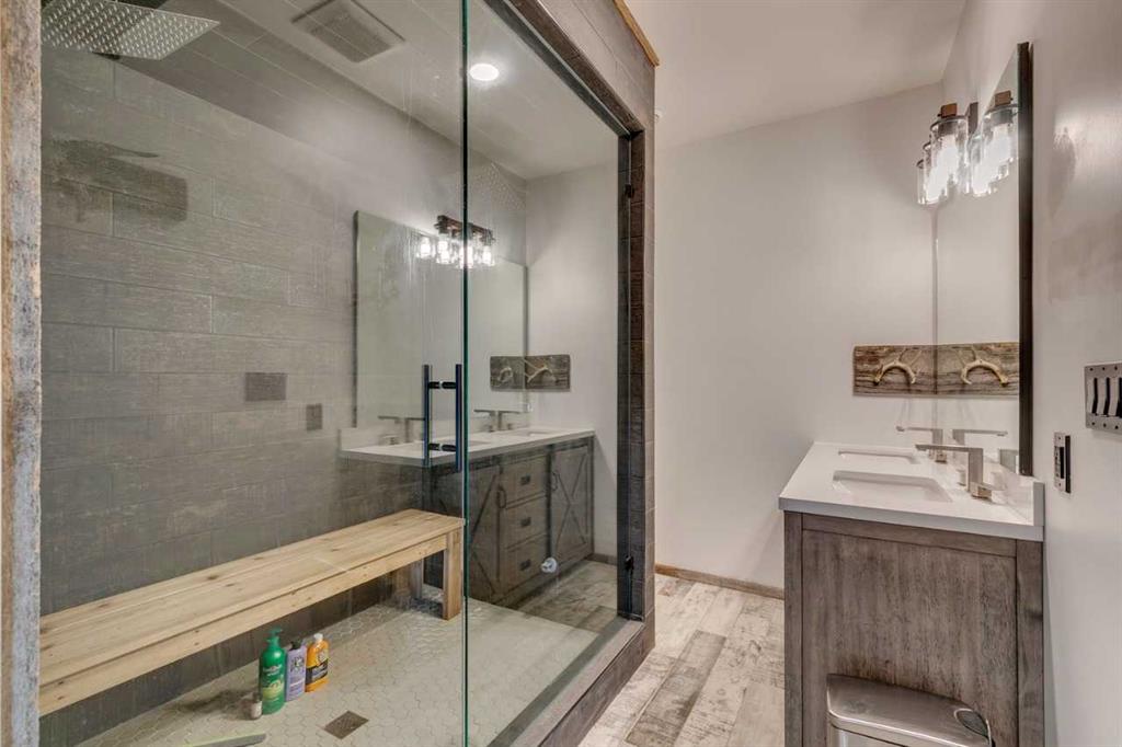 Beautifully maintained walk-out bungalow located in a quiet cul-de-sac in Speargrass, backing onto the golf course with mountain and sunset views. The kitchen features a walk-in pantry, modern cabinetry with under-cabinet lighting, quartz countertops, and a large centre island that opens to a covered outdoor living space. The primary bedroom includes a five-piece ensuite with soaking tub, wall niche, separate shower, dual sinks with backlit mirrors, and a walk-in closet with automatic lighting and direct access to the laundry room. A second bedroom, which can also serve as a home office, is located on this level along with a guest bathroom and access to the oversized 25x24 double garage. The Walk-Out Basement finished in 2024 features an additional bedroom, another full bath with 3 person steam room, gym, bar/area and storage with potential for a 4th bedroom development. Exterior highlights include an extended driveway and the opportunity to landscape the backyard to your preference. Additional features include central air conditioning and automated window blinds on remote. Conveniently located approximately 40 minutes from Calgary’s South Health Campus, this home combines comfort, functionality, and a scenic setting.