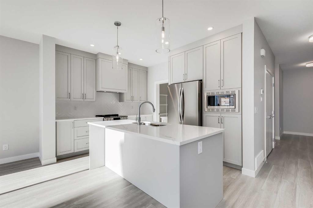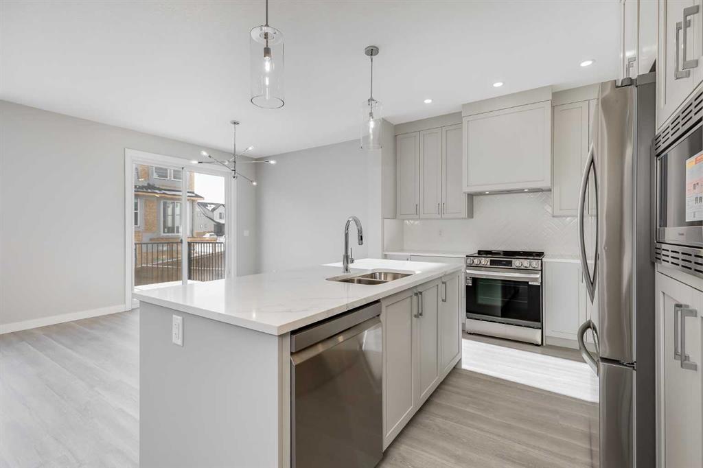 Looking for space, sunshine, and style? This NEW South Point home delivers big on all 3! A spacious 3-bedroom, 2.5-bath home that offers over 2,200 sq.ft. of thoughtfully designed living space, highlighted by 9' ceilings on both the main floor and the bright sunshine basement. The open-concept main level features large windows, a modern kitchen with quartz countertops throughout, sleek cabinetry, a walk-in pantry, and a welcoming island with a breakfast bar. The dining area opens effortlessly into the Great Room, creating a warm and inviting space for everyday living.
