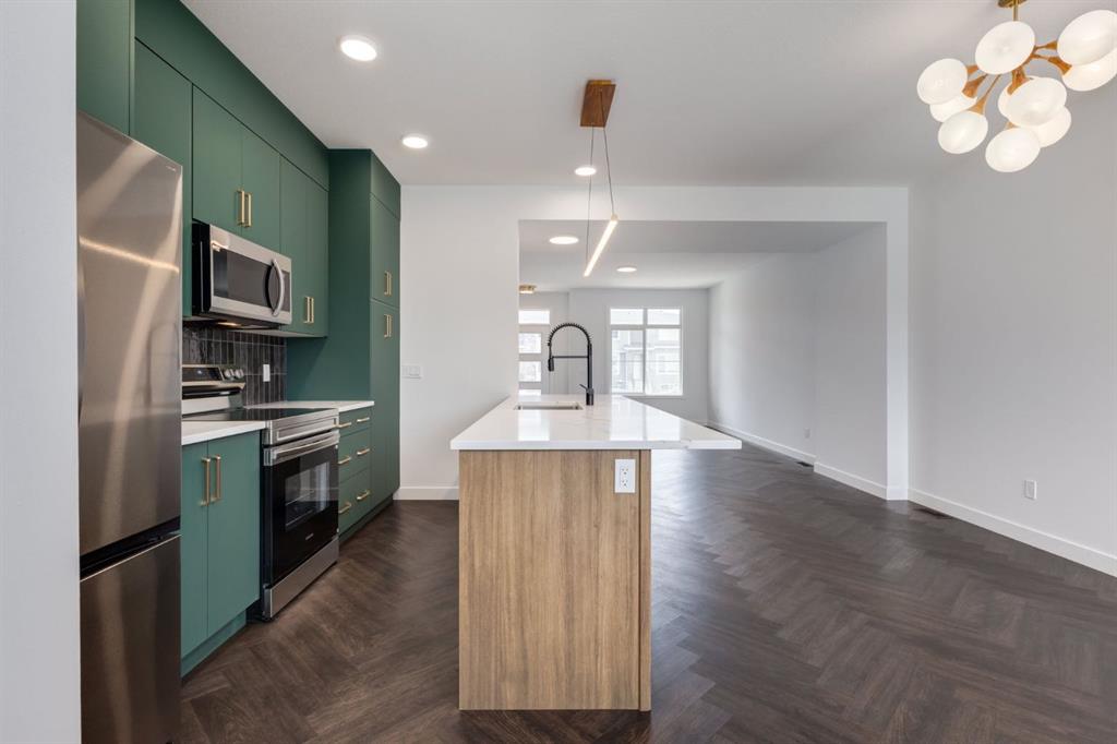Brand new the No condo fee 'TALO' town floorplan by Rohit Homes, with unmatched design interiors and striking exteriors to create elevated living. Featuring 1500 sq ft, 3 bed/2.5 bath + Bonus. Note: This unit has not yet started construction. All Perfectly located In SE Calgary's 'Sora in Hotchkiss', close to a park, featuring a pond, paths, easy access to major highways and more. Step inside to an expansive open floor plan that seamlessly connects living/dining and kitchen. KITCHEN FEATURES: SS appliances, quartz counters, large island (with place for bar stools), desginer cabinets, boutique lighting - a perfect place to gather and create masterful meals. Off the kitchen is the dining, mid room and half bath. The TALO plan offers large windows across the back and front, and with the high ceilings as well as open floor plan, it leaves the home feeling bright and inviting. Upstairs, find 3 good size bedrooms, bonus room, laundry, 2 full baths. The primary retreat includes a walk in closet, and spa like retreat full en-suite. Ensuite features: Single vanity, window, bath/shower combo, quartz counters and beautiful tile work. The lot features alley access in the back to a concrete parking pad. Located just outside the ring-road, east of Stoney Trail, offering quick access to highways and other amenities on the southeast side of Calgary. All pictures and 3D tours are of the 'TALO' floorpan that is completed, your unit may have different (colors/finishings/spec upgrades/design interior/elevation) depending on Lot - confirm with builder. At Rohit Homes, we know it’s not just about having a functional floor plan, it’s about having a space that you’re proud to show off. Each of our homes features a distinct look that is inspired by you - our customers. Built by a 4-time Home Builder of the Year with Peace-of-mind 1-2-5-10 year new home warranty. Unparalleled level to townhome living awaits. Note: The listed price includes GST - The First-Time Home Buyers' GST Rebate could save you up to $50,000 on a new home! You must be 18+, a Canadian citizen or permanent resident, and haven't owned or lived in a home you or your spouse/common-law partner owned in the last four years. Terms and conditions are subject to the Government of Canada/CRA rules and guidelines. *Visit show home at 318 sora way SE Calgary mon-thurs 4-7pm, sat/sunday 2-5pm. Self guided tours available outside those times!