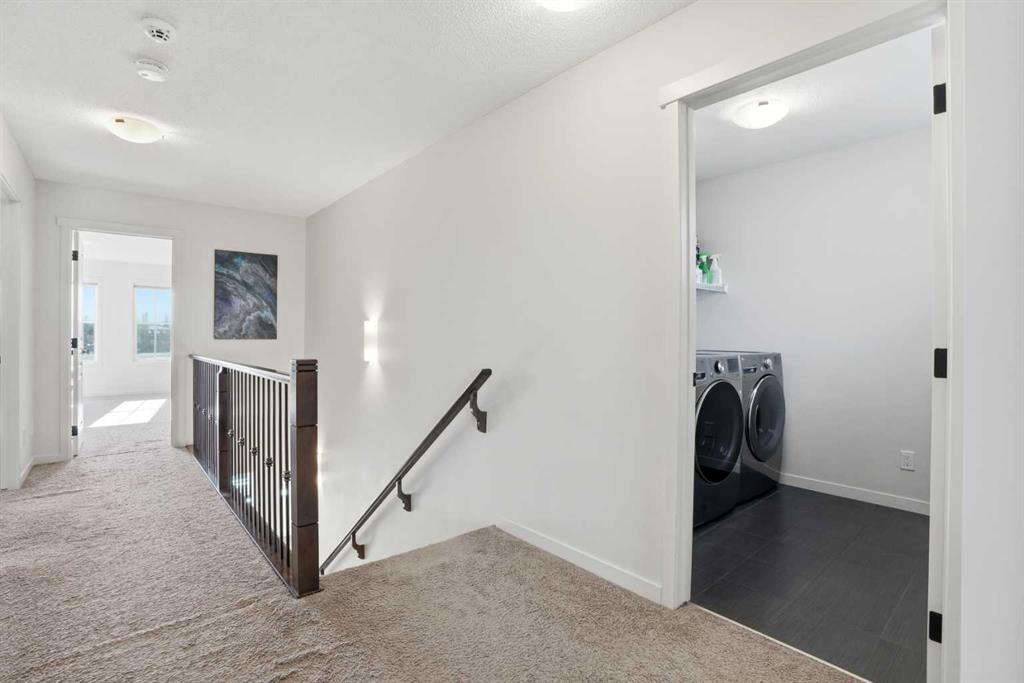 Open house Saturday 1-3pm. Welcome to this beautifully maintained 3-bedroom, 2.5-bathroom home backs onto large green field, next to the school in the heart of Reunion, Airdrie. Offering 2168 sq. ft. of bright, inviting living space with a versatile bonus/flex room, this home truly stands out for its thoughtful layout and pride of ownership. Step inside to a spacious entryway and rich hardwood floors that flow seamlessly throughout the main level. The open-concept design creates an airy, connected feel, while south-facing windows fill the home with natural light all day long. On cooler evenings, unwind by the cozy gas fireplace in the generous living room. The chef’s kitchen is a perfect hub for family gatherings and entertaining, featuring a gas stove, stainless steel appliances, ample counter space, and a large island with breakfast bar. A spacious mudroom with built-in lockers keeps everything organized as you come and go. Upstairs, a bright bonus room offers flexibility for a family retreat, play area, or home office. The primary suite overlooks the backyard and includes a walk-in closet and spa-like ensuite. Two additional bedrooms, a full bath, and convenient upper-floor laundry complete the level. The bright, unfinished basement is ready for your ideas—whether you envision a rec room, home gym, or additional living space, the possibilities are endless. Outside, enjoy the south-facing, fully landscaped, and fenced backyard, complete with a spacious deck and backs onto plenty of green space for play or relaxation. With Herons Crossing (K–8) School just across the back field, plus parks, playgrounds, and shopping nearby, this home perfectly blends comfort and convenience. Additional features include air conditioning, a double attached garage, and newly installed permanent exterior lights . Don’t miss this rare opportunity to own a warm, inviting home in a friendly, family-oriented community—book your private showing today!