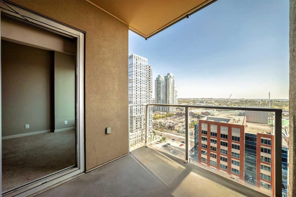 Welcome to this stunning 16th floor one bedroom suite in the modern Alura building. This meticulously maintained unit is move-in ready and comes with breath-taking view to the southeast. Open concept layout, floor-to-ceiling windows allow for sunlight to flood this 9-foot ceiling unit. Kitchen boasts ample cupboard and counter space, stainless steel appliances and a convenient breakfast bar. Spacious dining and living room are good for entertaining. Relax in your balcony with morning coffee, unwind after work or enjoy unobstructed firework at Stampede time. Included also are in-suite laundry, underground titled parking, assigned storage locker, central air-conditioning, tons of visitor parking, bike storage room, concierge / security service, state of the art fitness facility, 2 gyms. Beautiful outdoor terrace to enjoy in summer. Excellent location close to C-train, buses, grocery stores, Stampede Park. Walk to 17th avenue, downtown and top-rated restaurants. This is urban living at it finest. Don't miss the only one-bedroom available in the 18-plus Alura building.