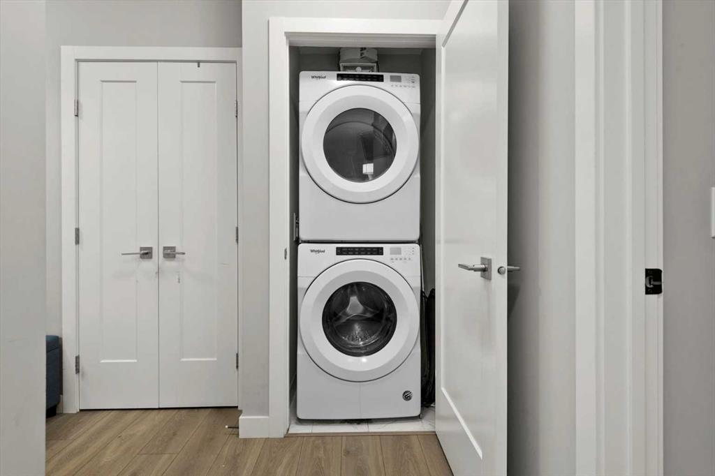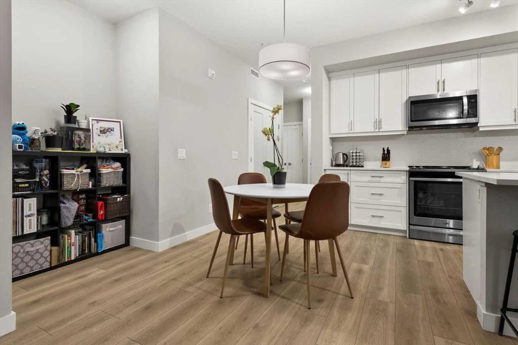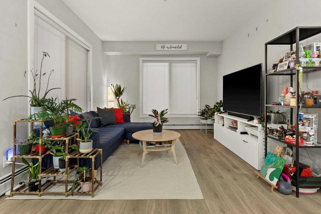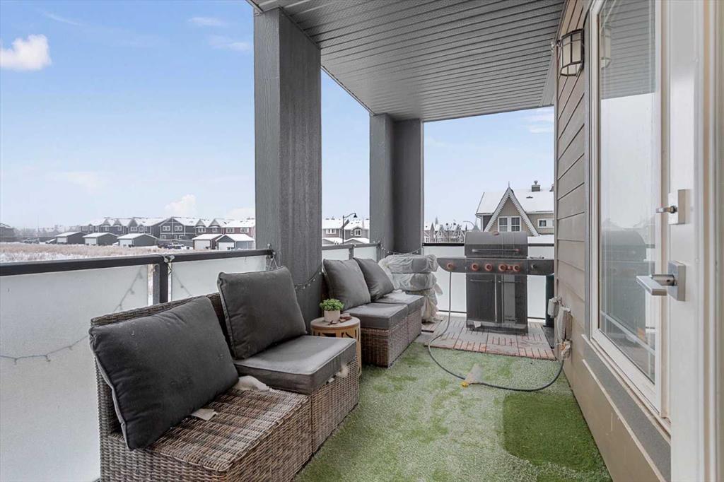 CORNER UNIT | 2 BEDROOMS | 2 FULL BATHS | WRAP-AROUND BALCONY | FULLY UPGRADED | UNDERGROUND HEATED PARKING & STORAGE LOCKER! Welcome to this fantastic and spacious 947 sq ft Corner Unit in the highly desirable, lake-access community of Auburn Bay! Featuring one of the largest floor plans in the complex, this bright and modern home offers 2 bedrooms, 2 full bathrooms, and a stunning wrap-around balcony. Step inside to 9 ft ceilings and an open-concept layout filled with natural light thanks to the many large windows complete with custom blinds. The fully upgraded kitchen features white soft-close cabinetry, quartz countertops, stainless steel appliances, and a functional layout ideal for cooking and entertaining. The spacious living room flows seamlessly into the dining area, providing the perfect setting for gatherings with family and friends.The well-designed split-bedroom layout places the bedrooms on opposite sides of the home for maximum privacy. The primary suite offers his & hers closets and a stylish 3-piece ensuite with quartz counters. The second bedroom is generously sized and conveniently located next to the 4-piece main bathroom. In-suite laundry adds everyday convenience. Enjoy your morning coffee or host summer BBQs on the sunny wrap-around balcony, one of the standout features of this home! This unit includes a heated underground parking stall and a secure storage locker. The pet-friendly complex also offers a convenient dog wash station on site. Located in the heart of Auburn Bay, you’ll enjoy lake access, nearby parks, schools, pathways, shopping, restaurants, transit, the YMCA, VIP Cineplex theatres, and the South Health Campus, all just minutes away. Quick access to Stoney and Deerfoot Trails ensures effortless commuting across the city. This exceptional corner unit offers style, comfort, and an unbeatable location. The perfect place to call home!