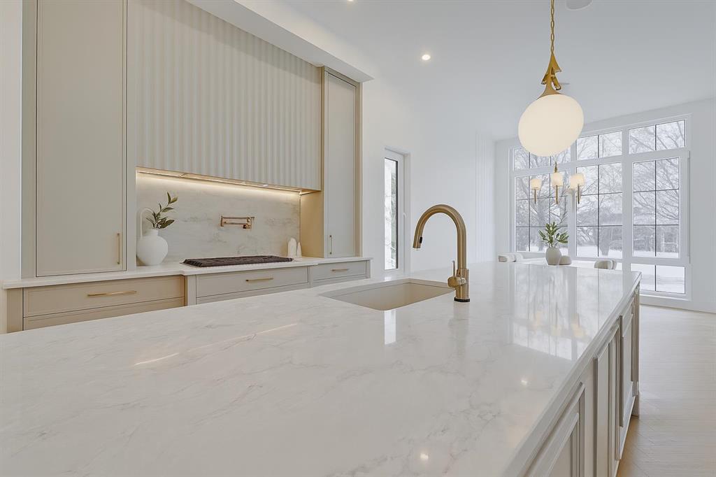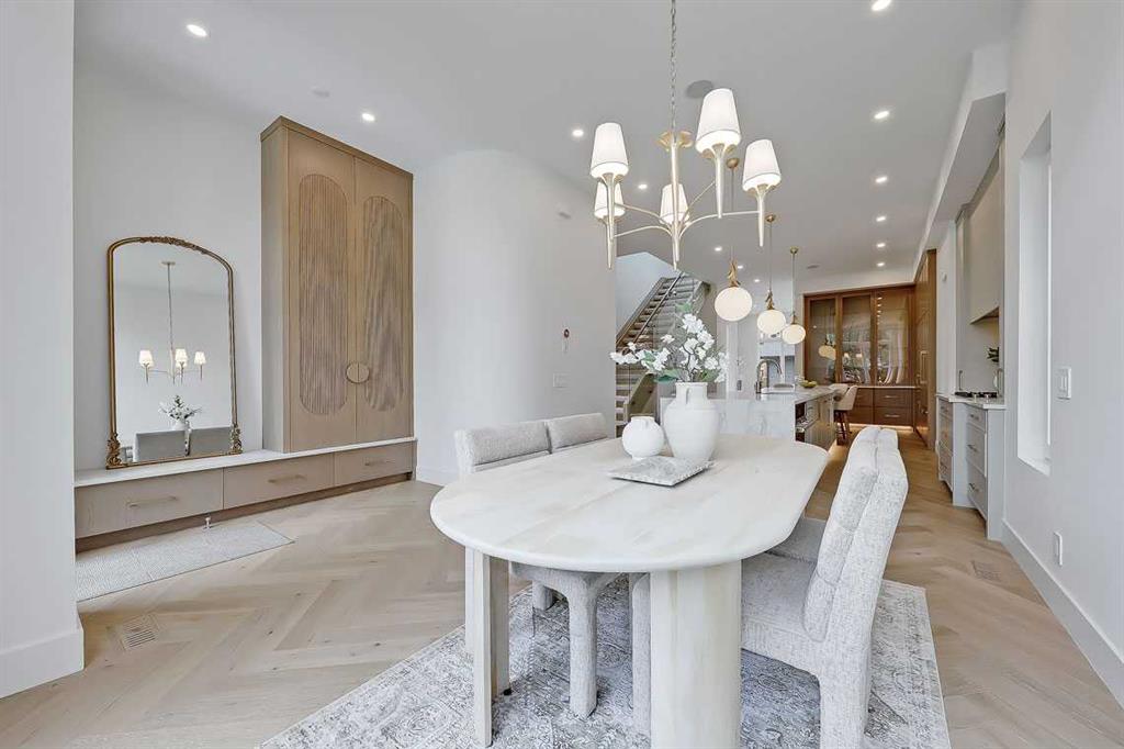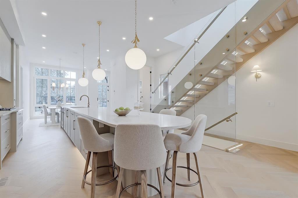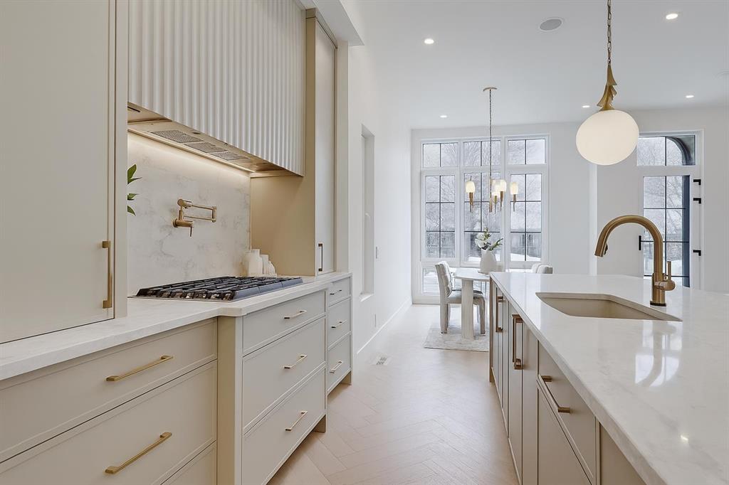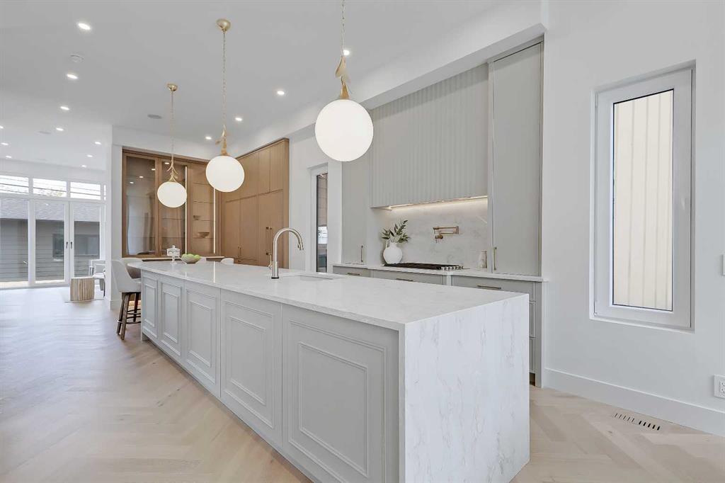 **Get $10,000 Back! Make your move into luxury living effortless with our exclusive Buyer Bonus.** In the heart of NORTH GLENMORE PARK, this exquisitely designed MOVE-IN READY LUXURY DETACHED INFILL from BLACK LABEL DESIGNER HOMES stands apart with refined architecture, elevated finishes, and a layout that perfectly blends function and beauty. Every detail feels considered — from the rich material palette to the sophisticated flow of each space — all tucked onto a quiet street near parks, schools, and the golf course. The entry sets the tone with wide-plank HERRINGBONE ENGINEERED HARDWOOD and a full-height glass door with a built-in bench with custom mitered details in the coat closet and lower drawers. A front dining room offers a more formal space, while the central kitchen feels like a showpiece — layered with full-height cabinetry, custom built-ins, and a sculptural ROUNDED ISLAND wrapped in quartz. The upgraded JENNAIR APPLIANCE PACKAGE includes a gas cooktop, wall oven, and panelled fridge, paired with a stunning BLANCO SINK, pot filler, and integrated LED UNDERMOUNT and SKIRT LIGHTING (also found throughout the home). The living room at the rear is bathed in natural light, featuring an elegant gas fireplace with a custom porcelain, two-tiered mitre mantle and built-in shelving. Around the corner, a functional mudroom leads to the double garage, adding daily convenience with bench seating and ample storage, and the powder room is a true statement curved vanity and designer lighting. Upstairs, the vaulted primary suite features OPEN WOOD BEAMS, oversized windows, and a walk-through closet with built-in millwork. The ensuite is pure luxury — HEATED FLOORS, a freestanding soaker tub, dual vessel sinks, quartz counters, a STEAM SHOWER w/ BODY JETS, and a skylight overhead. All bathrooms throughout the home offer IN-FLOOR HEAT and VOVO SMART BIDET TOILETS, including the main upper bath with WOOD SLAT FEATURE WALL and vessel sink, while the laundry room is finished with quartz counters, designer tile backsplash, custom cabinetry, and a hanging rod. Two good-sized secondary bedrooms with herringbone hardwood and walk-in closets offer space for the whole family! The basement is fully developed with a rec room, fourth bedroom, full bath, and a statement WET BAR with its own island, dishwasher, and bar sink! And a TANKLESS WATER HEATER ensures comfort throughout the seasons. North Glenmore Park is one of Calgary’s most desirable inner-city communities — offering a rare mix of tranquility and convenience. Surrounded by mature trees, top-rated schools, and endless green space, the neighbourhood is just steps from Glenmore Athletic Park, Sandy Beach, and the Elbow River Pathway. You’re walking distance to North Glenmore Park School and Central Memorial High School, with quick access to Mount Royal University, Lakeview Golf Course, and shops and restaurants in Marda Loop. Easy connections to Crowchild, Glenmore, and Sarcee Trail make commuting seamless in every direction.