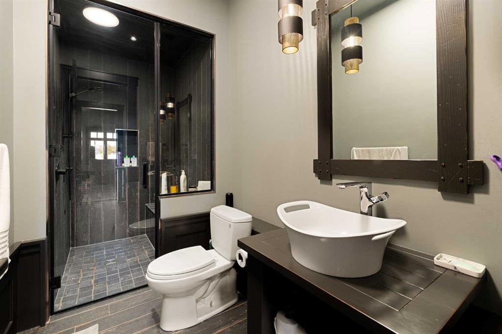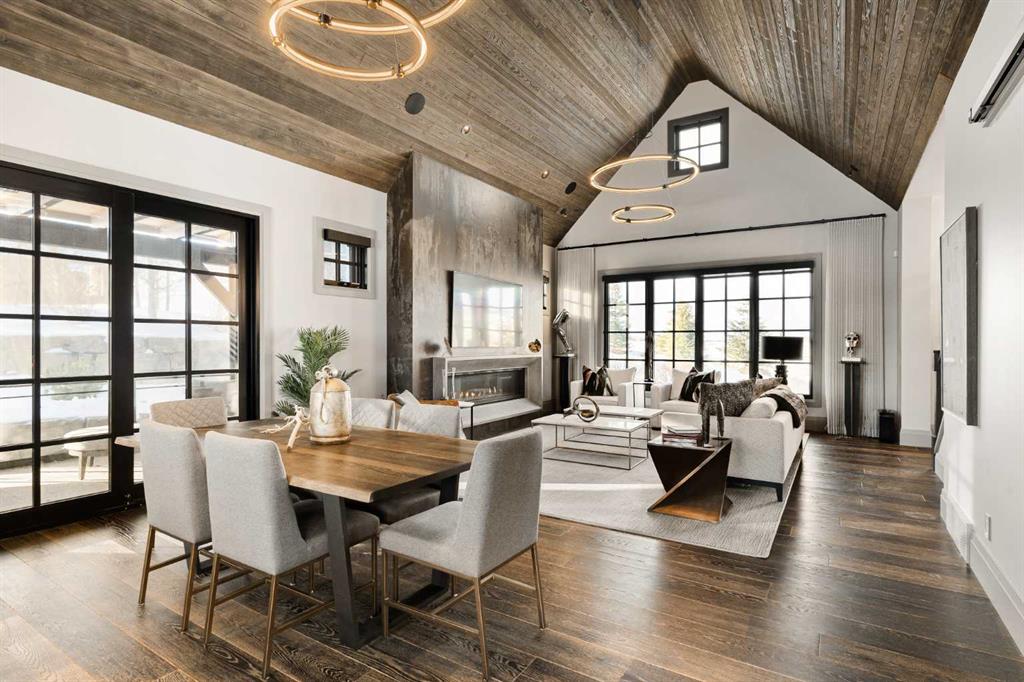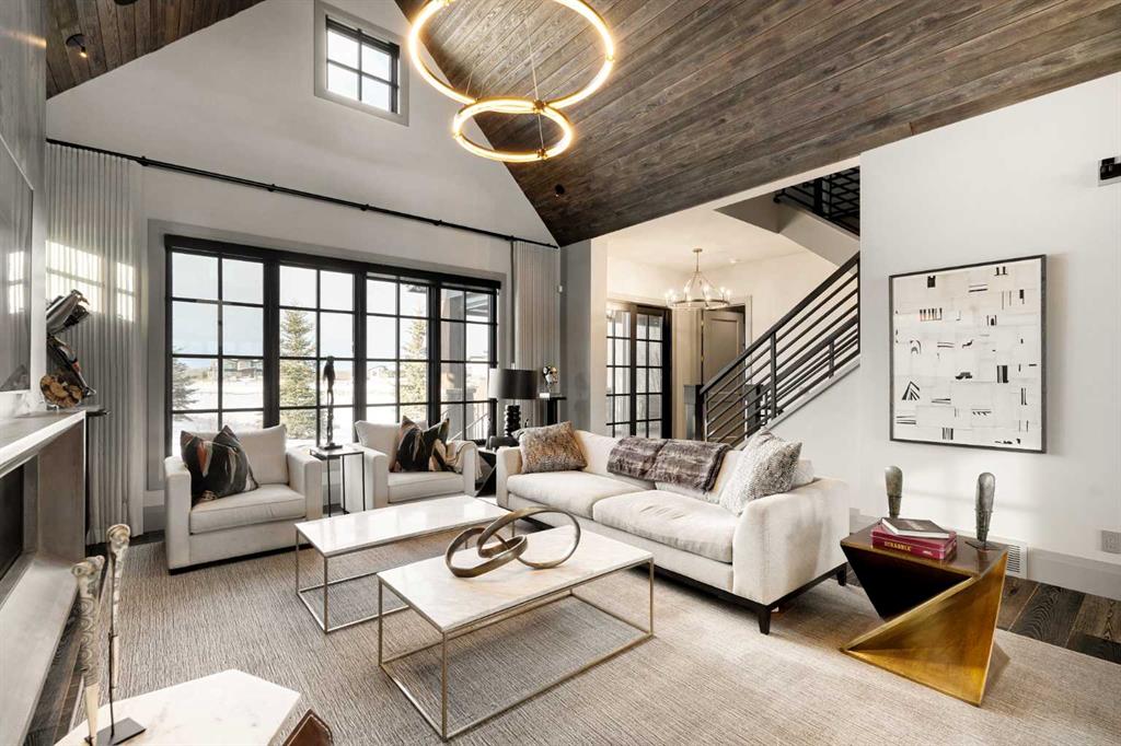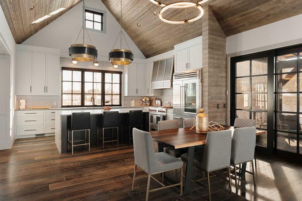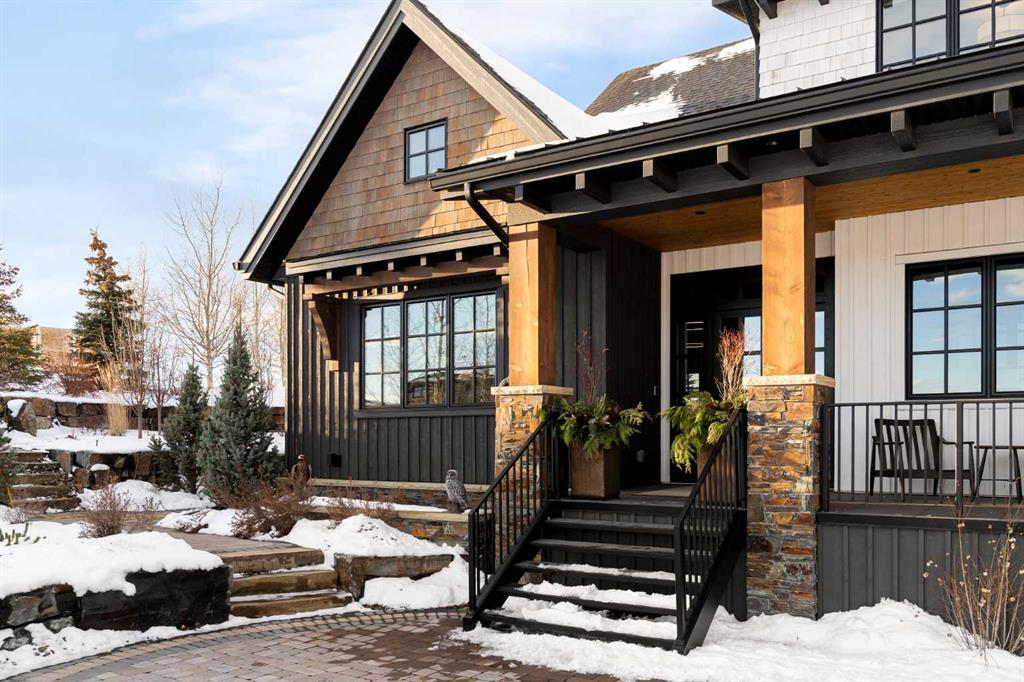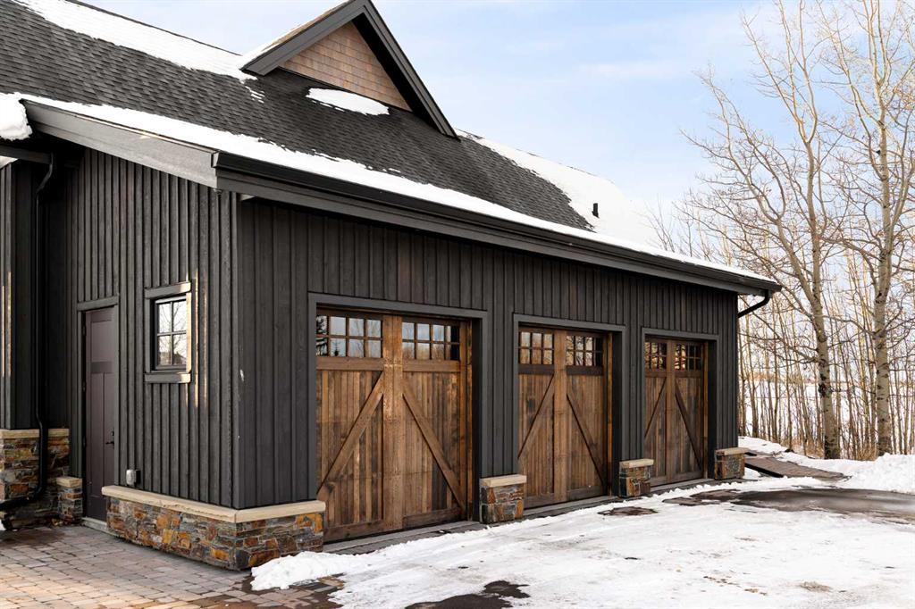 Watch the FULL home tour on YouTube of this exceptional modern, farmhouse inspired home! Welcome to Silverhorn Park in Bearspaw, where luxury, privacy, and timeless design come together on a stunning 1.49 acre estate backing open green space. Thoughtfully landscaped with mature trees, natural stonework, a large outdoor firepit, and two heated decks with Phantom screens, this residence is the perfect blend of modern architecture and rustic farmhouse warmth. Step inside to a grand foyer with rich hardwood floors and a charming telephone-booth office with custom built-ins. The kitchen is a showpiece with vaulted ceilings with wood panel accents, a striking waterfall island, two-toned cabinetry, and top-tier appliances including a Wolf gas stove and convection oven, Sub-Zero fridge, and an artful custom range hood. A walk in pantry adds additional storage, a steam oven, sink, and the ultimate coffee bar area. The dining area opens to the side deck for seamless indoor-outdoor living, while the living room centers around a floor-to-ceiling fireplace that defines luxury and invites the family to gather. The main floor primary retreat offers a custom closet and spa-like ensuite with a large soaker tub, dual sinks, glass shower, and abundant storage. A well-designed mudroom houses the laundry room with a sink, tons of storage, and leads to the nicest garage you have ever seen, a heated triple car haven with epoxy floors, custom built-in workbench, and a wood ceiling treatment on the vaulted ceilings. Upstairs features a secondary laundry room and two spacious bedrooms, each with their own walk-in closets and private ensuites. The fully finished lower level impresses with a wet bar, expansive secondary living area, full gym, a hobby room with a half bath for the creator of the family, full bath with soaker tub, sauna and steam shower, plus a large 4th bedroom with custom built-ins. As if the main home and the stunning lot wasn’t compelling enough, completing the property is a charming, fully separate Carriage House Suite with its own great sized living and entertaining room, 1 bedroom, a full bathroom, and a full kitchenette, perfect for guests or extended family. Located in Silverhorn, and only a 6-7 minute drive from the edge of the city you'll enjoy an exceptionally well designed community with some of Bearspaw's most incredible homes. The communal septic fields, water co-op, fibre optic internet, and homesites with large amounts of natural reserve land kept pristine make Silverhorn the premier acreage lifestyle community around Calgary. You’ll enjoy the tranquility of country living while still being only minutes from top amenities like the Bearspaw Golf & Country Club, Flores & Pine, and more. This is truly a one of a kind masterpiece just minutes from the city. Book your private showing today!