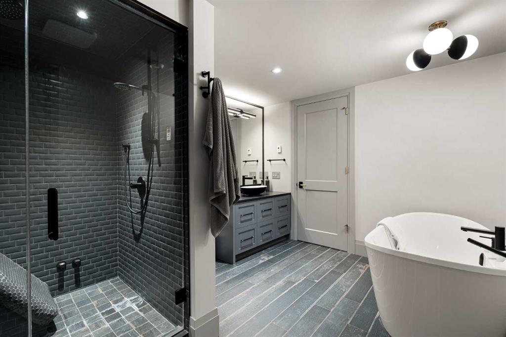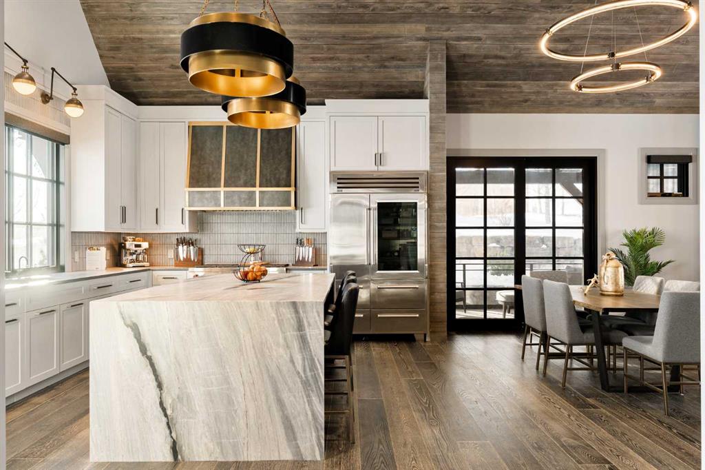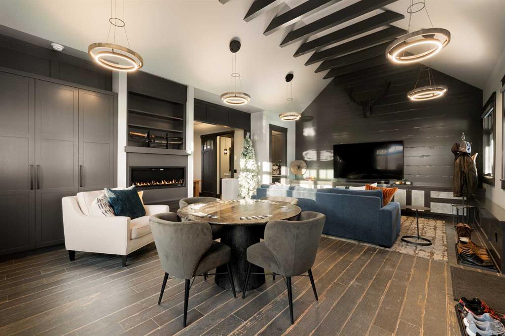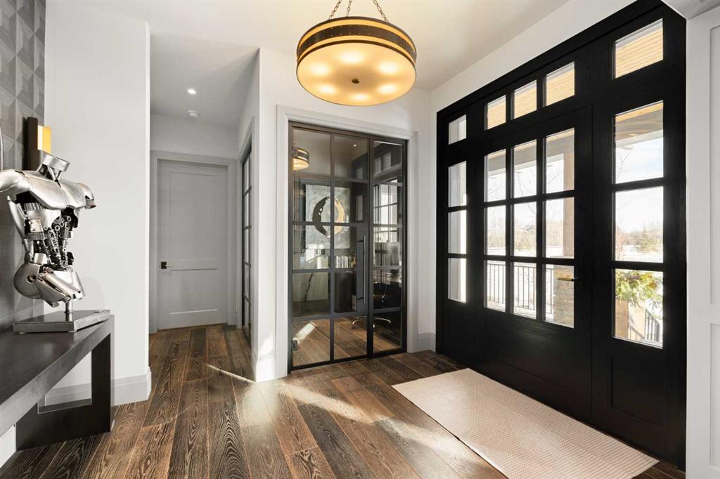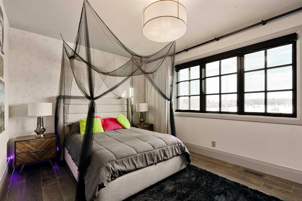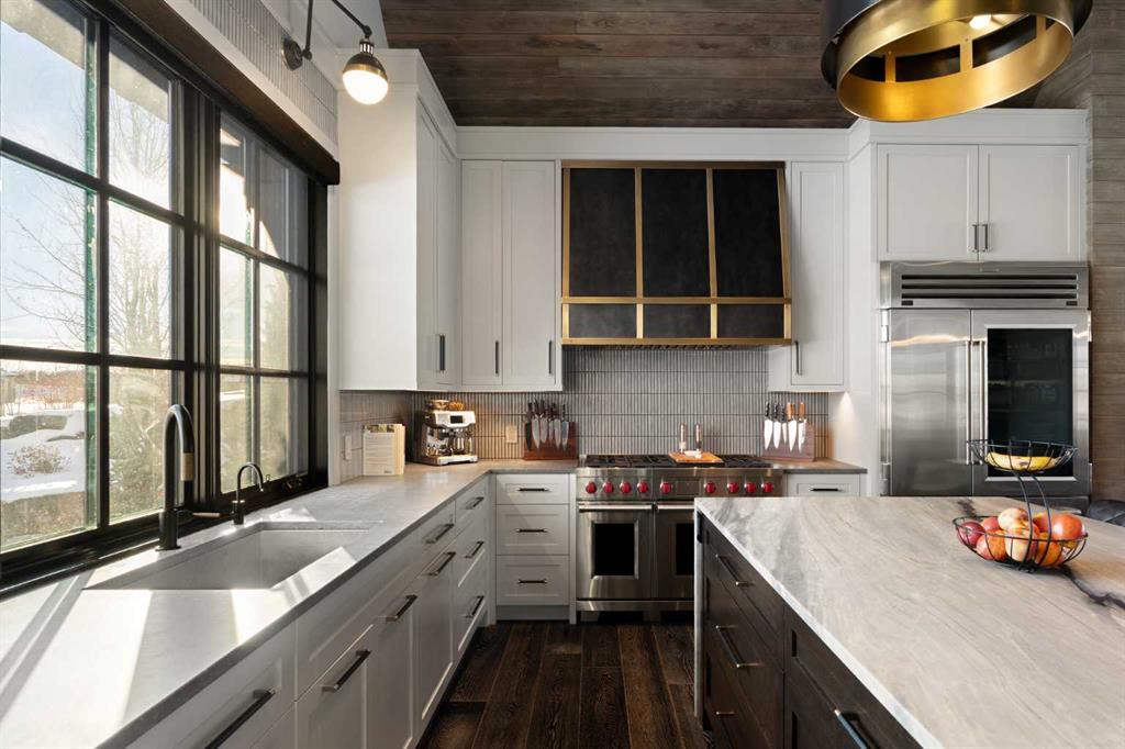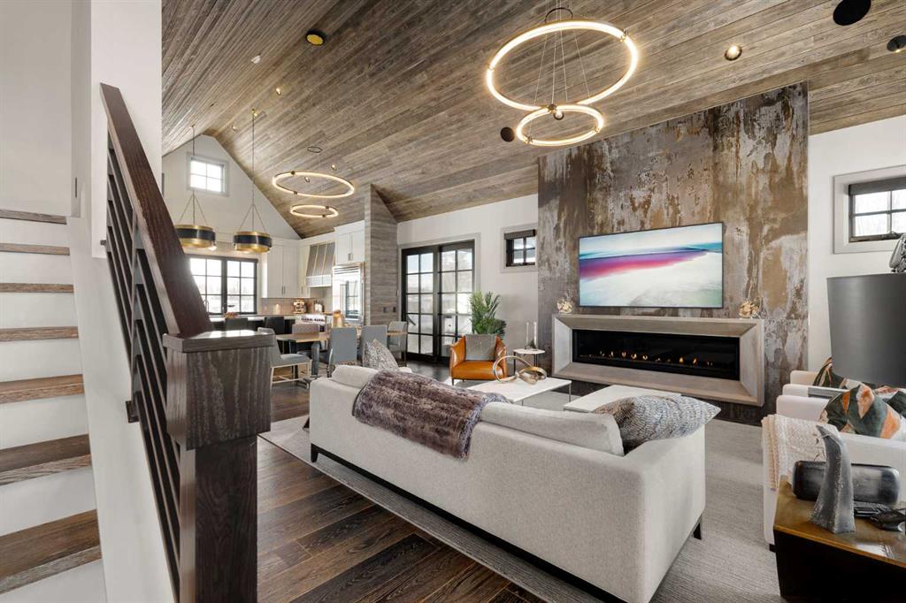 Watch the FULL home tour on YouTube of this exceptional modern, farmhouse inspired home! Welcome to Silverhorn Park in Bearspaw, where luxury, privacy, and timeless design come together on a stunning 1.49 acre estate backing open green space. Thoughtfully landscaped with mature trees, natural stonework, a large outdoor firepit, and two heated decks with Phantom screens, this residence is the perfect blend of modern architecture and rustic farmhouse warmth. Step inside to a grand foyer with rich hardwood floors and a charming telephone-booth office with custom built-ins. The kitchen is a showpiece with vaulted ceilings with wood panel accents, a striking waterfall island, two-toned cabinetry, and top-tier appliances including a Wolf gas stove and convection oven, Sub-Zero fridge, and an artful custom range hood. A walk in pantry adds additional storage, a steam oven, sink, and the ultimate coffee bar area. The dining area opens to the side deck for seamless indoor-outdoor living, while the living room centers around a floor-to-ceiling fireplace that defines luxury and invites the family to gather. The main floor primary retreat offers a custom closet and spa-like ensuite with a large soaker tub, dual sinks, glass shower, and abundant storage. A well-designed mudroom houses the laundry room with a sink, tons of storage, and leads to the nicest garage you have ever seen, a heated triple car haven with epoxy floors, custom built-in workbench, and a wood ceiling treatment on the vaulted ceilings. Upstairs features a secondary laundry room and two spacious bedrooms, each with their own walk-in closets and private ensuites. The fully finished lower level impresses with a wet bar, expansive secondary living area, full gym, a hobby room with a half bath for the creator of the family, full bath with soaker tub, sauna and steam shower, plus a large 4th bedroom with custom built-ins. As if the main home and the stunning lot wasn’t compelling enough, completing the property is a charming, fully separate Carriage House Suite with its own great sized living and entertaining room, 1 bedroom, a full bathroom, and a full kitchenette, perfect for guests or extended family. Located in Silverhorn, and only a 6-7 minute drive from the edge of the city you'll enjoy an exceptionally well designed community with some of Bearspaw's most incredible homes. The communal septic fields, water co-op, fibre optic internet, and homesites with large amounts of natural reserve land kept pristine make Silverhorn the premier acreage lifestyle community around Calgary. You’ll enjoy the tranquility of country living while still being only minutes from top amenities like the Bearspaw Golf & Country Club, Flores & Pine, and more. This is truly a one of a kind masterpiece just minutes from the city. Book your private showing today!