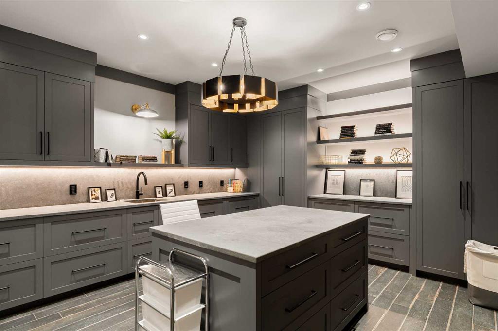 bar, built-in features, closet organizers, double vanity, high ceilings, kitchen island, open floorplan, pantry, recessed lighting, recreation facilities, sauna, soaking tub, steam room, vaulted ceiling(s), walk-in closet(s), wet bar
