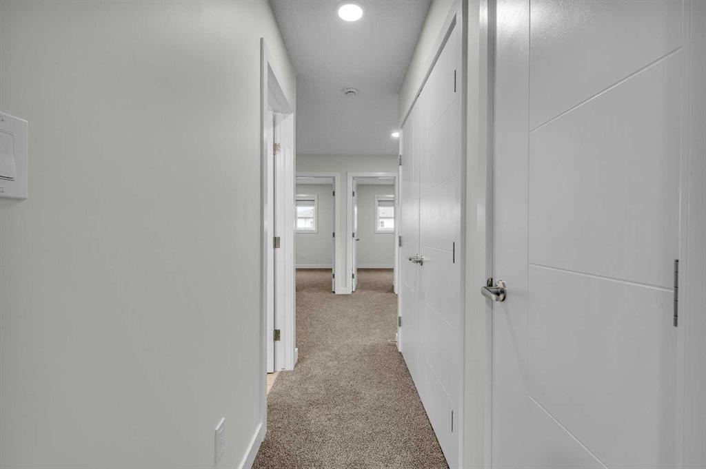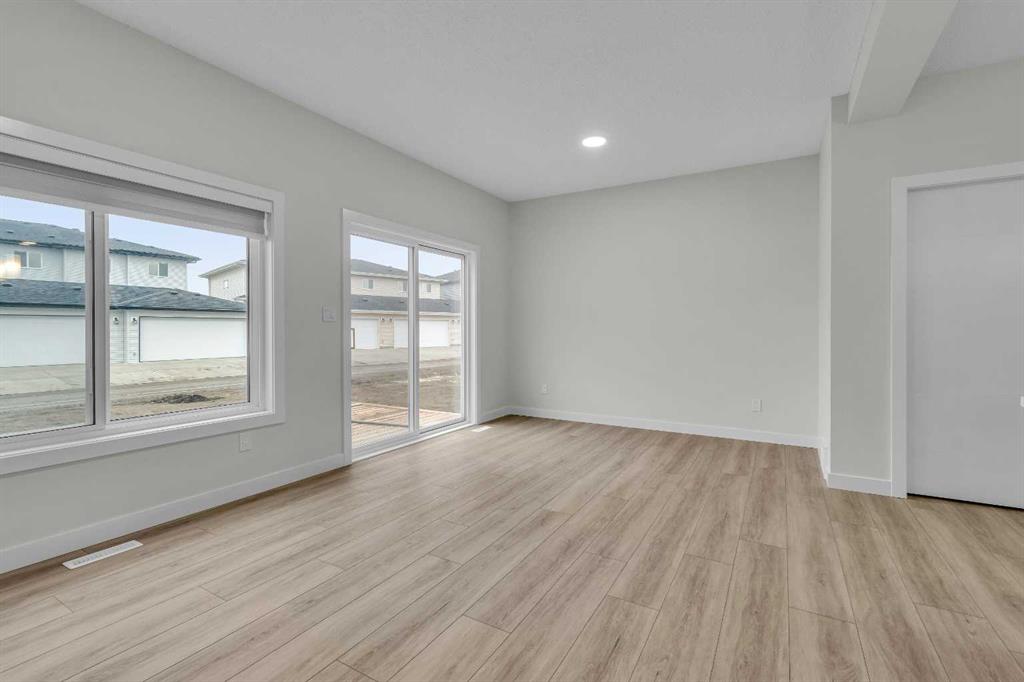 Located in family-friendly Legacy and backing onto a peaceful GREEN SPACE with a WALKING TRAIL, this brand new home is currently under construction with a tentative completion in February 2026. Thoughtful design, upgraded finishes, and future-ready systems come together to create a comfortable and flexible layout ideal for a range of lifestyles. The main level offers 9’ CEILINGS and CALIFORNIA KNOCKDOWN texture for an open, airy feel, while wide windows capture the afternoon and evening light from the SOUTHWEST BACKING YARD. An electric FIREPLACE with a clean-lined mantle anchors the GREAT ROOM, providing warmth and character. In the KITCHEN, STONE COUNTERTOPS, SOFT CLOSE CABINETRY, POTS AND PAN DRAWERS and the full-height tile detail creates a polished backdrop that elevates the hood fan area. The ISLAND includes built-in microwave cabinetry, and a 12” bulkhead above the cabinets adds architectural definition. The adjacent nook provides an inviting space for daily dining with views toward the green space. Upstairs, the primary bedroom features a generous layout, upgraded window design, and a well-appointed ENSUITE for everyday convenience. Two additional BEDROOMS and a BONUS ROOM offer comfortable flexibility for families, guests, or work-from-home arrangements. The upper-level laundry is enhanced by added lighting for improved usability. This home is also equipped with valuable structural and mechanical upgrades, including a 200AMP ELECTRICAL PANEL, rough-in gasline for a future BBQ, and both a SIDE ENTRANCE and extensive ROUGH-INS for FUTURE BASEMENT DEVELOPMENT. These include provisions for laundry, a wet bar, a range hood, dryer vents, and a 2ND FURNACE, allowing future owners to maximize the lower level with ease. Two BASEMENT WINDOWS, including an added 60"x30" slider, support natural light for potential bedroom development. Exterior enhancements elevate both curb appeal and durability, with HARDIE SIDING, upgraded SMARTBOARD TRIMS, a 10’x5’ REAR LANDING with aluminum railing, and stone details carried across key elevations. The DOUBLE ATTACHED GARAGE is finished with layout adjustments suited to the lot design. Window coverings are included, along with an appliance allowance and a $500 landscaping gift certificate for future finishing touches. With its southwest exposure, upgraded finishes, green space backdrop, and future-ready infrastructure, this home in Legacy delivers comfort, style, and long-term flexibility in a growing, well-connected SE community.