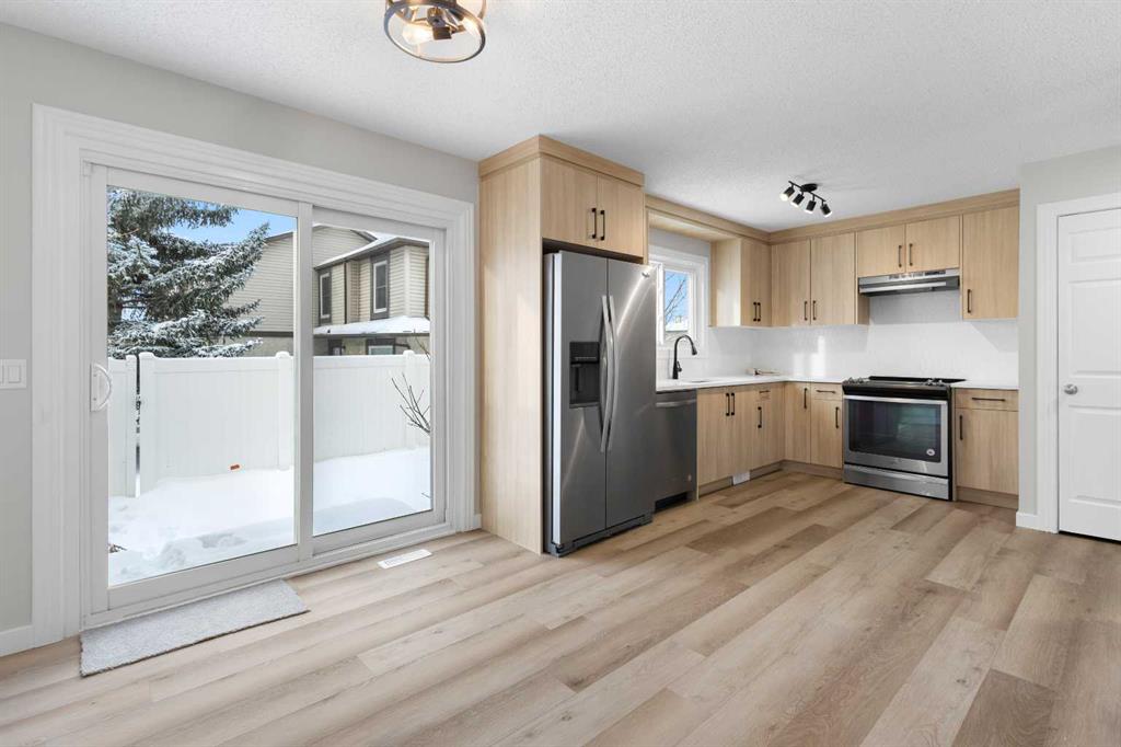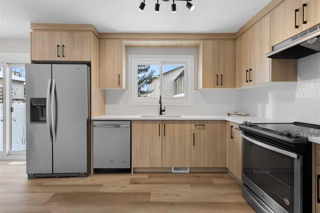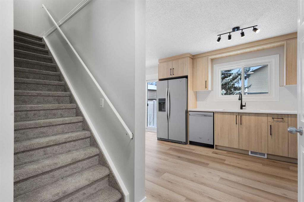 Welcome to this beautifully FULLY renovated unit located in a well-maintained complex in the desirable Deer Ridge neighbourhood, just minutes from Fish Creek Park and within walking distance to shopping and restaurants. Upon entry, you are welcomed into a bright living room with a large front window that fills the space with natural light. The main floor features a stunning NEW kitchen with modern cabinetry, * quartz countertops, a trendy backsplash, and * new light fixtures, seamlessly flowing into the dining area with patio doors leading to your private backyard. A * newly updated half bathroom and utility closet complete the main level.