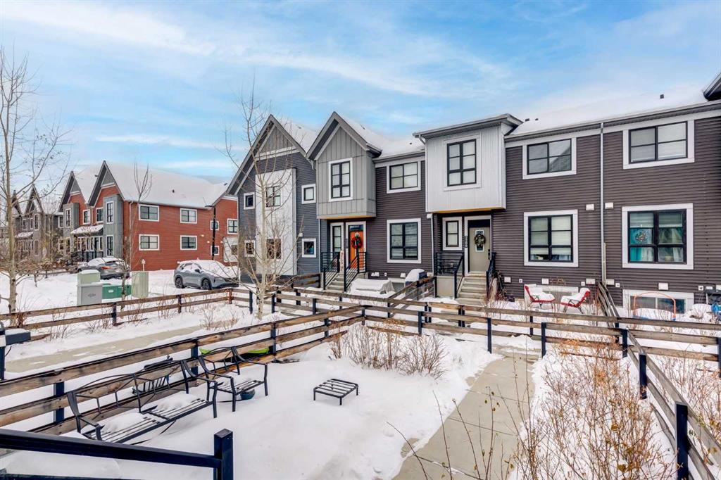 Luxury and refined styling define this beautifully upgraded townhouse, ideally located in the upscale and sought-after community of Walden. From the moment you arrive, the landscaped frontage and spacious concrete patio create an inviting outdoor space—perfect for relaxing, BBQing, or entertaining friends. This unit is privately positioned within the complex, tucked away from street traffic and noise for added peace and comfort. Inside, you’ll find nearly 1,300 sq. ft. of thoughtfully designed living space featuring 3 bedrooms, 3.5 bathrooms, and two dedicated parking stalls. The main level showcases 9 ft ceilings and luxury vinyl plank flooring that continues throughout both levels, creating a cohesive and modern feel. The gourmet kitchen is a standout, offering quartz countertops, a chimney-style hood fan, upgraded stainless steel appliances including a gas stove, and premium finishing touches for both style and functionality. Upstairs features 2 bedroom and 2 full bathrooms, while the fully finished basement adds exceptional versatility with a third bedroom, a full bathroom, convenient laundry, and a generous walk-in closet with excellent storage capacity. Pride of ownership is evident throughout, and the well-managed complex benefits from very low condo fees—making this home not only stunning but practical. With public transit, shopping, parks, and easy access to Stoney Trail and Deerfoot Trail, commuting and daily convenience are effortless. This move-in ready home offers the perfect blend of luxury, comfort, and location in one of Calgary’s most desirable newer communities.