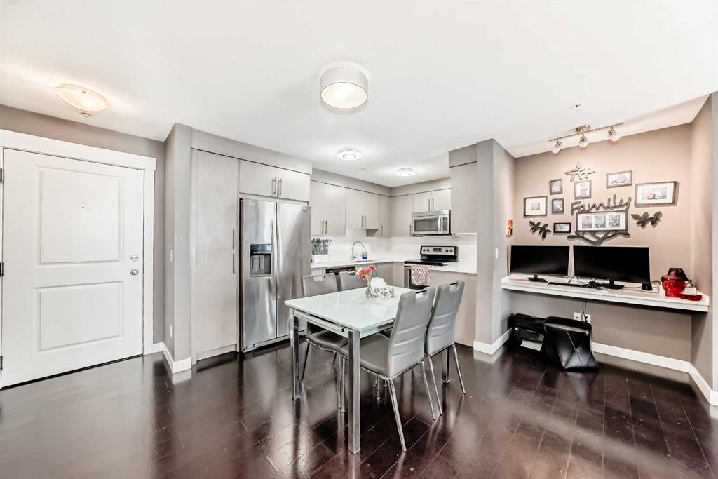 Welcome to modern and beautifully appointed 2-bedroom, 2-bathroom condo backing to green space located in the vibrant community of Skyview Ranch. Ideal for first-time buyers, young professionals, or investors, this stylish home features an open-concept layout with abundant natural light. The unit features a generous living room that provides a comfortable space to relax and extends to a private balcony facing the tranquil green space—perfect for enjoying the morning sunrise or settle in for peaceful evenings. A corner chef inspired kitchen with stainless steal appliances and plenty of storage. This thoughtfully designed layout features a spacious primary bedroom complete with double closet and a stylish ensuite. The second bedroom is ideal for guests or as a comfortable space for a growing family. Additional highlights include another 4 piece bathroom, in-suite laundry, an open office area, titled underground parking, and convenient access to amenities such as visitor parking. Enjoy the convenience of quick access to major roadways, including Deerfoot Trail and Stoney Trail, along with nearby public transit for an easy commute to downtown Calgary. You’re also just minutes from the International Airport. Skyview Ranch is a family-friendly neighborhood offering schools, parks, and shopping within walking distance, plus a short drive to Costco, CrossIron Mills, Chalo FreshCo, Shoppers and many more for all your everyday needs. Don’t miss this outstanding opportunity to own a contemporary home in one of Calgary’s fastest-growing communities.