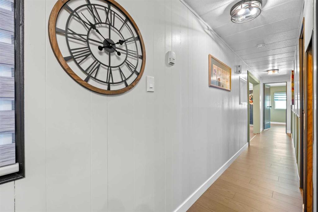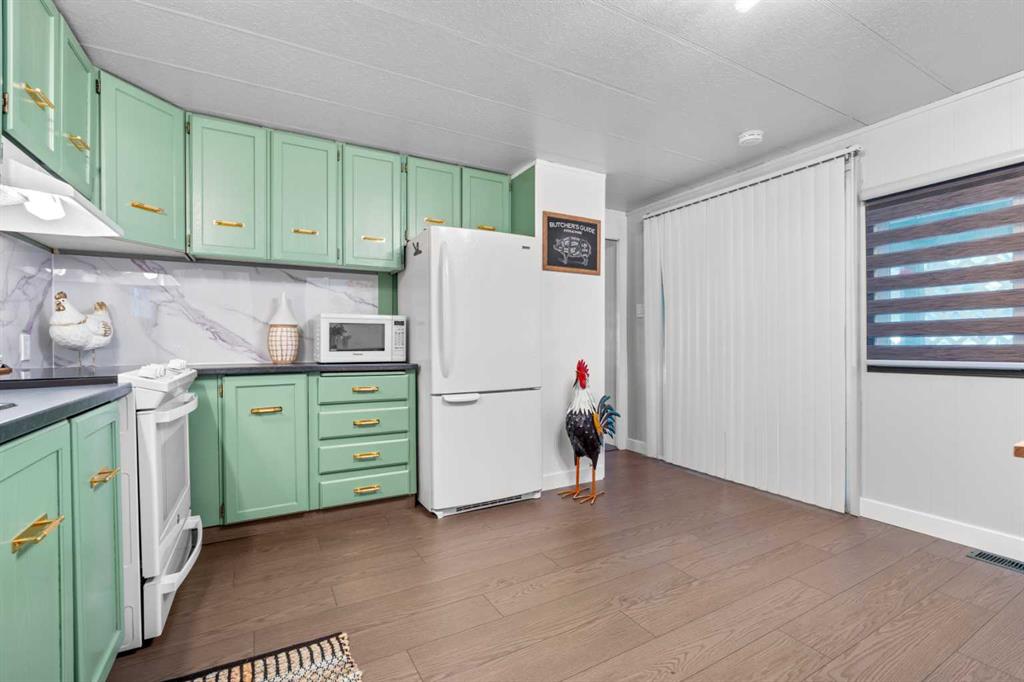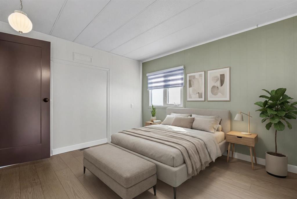 ***NEW YEAR...NEW HOME...NEW LIFESTYLE*** UPDATED, AFFORDABLE, PRISTINE & PERFECTLY PRICED TO SELL! This adorable 2 bed & 1 bath GEM is everything you could want. Enter into good sized foyer with double closets (no lack of storage here). Fully updated new luxury vinyl flooring & lighting throughout the home, baseboard, casing, blinds, all new floor grates, modern paint colours, new interior doors, wainscotting. Separate mud room leads out to back deck (new as well). Kitchen has new countertop, backsplash, double stainless sink, faucet, portable dishwasher (only 3 years old) moveable island, newer convection stove, microwave & fridge. The separate laundry room off the kitchen has the washer & dryer. Nice to have the laundry room tucked away instead of being in a hallway. This laundry room also gives you lots of cupboard space and room for brooms, vacuums etc. Off the kitchen patio doors to deck & 2 more closets, one in hallway and one just to the right of the kitchen. The open concept living/dining room has new paint, newer shiplap feature wall, lighting and blinds on the bay window. Both bedrooms are a good size separated by the bathroom (makes for perfect room mate/teen situation). The primary has wall to wall closets and the second bedroom is huge (used to be 2 bedrooms). The main bath Is completely renovated with new flooring, gorgeous vanity with his and her sinks, mirrors, medicine cabinet, soaker tub and comfort height toilet. Exterior offers newer front door, covered deck full length of home with xtra cupboards, new carpeting, painted exterior wood trim on side of home facing the carport, covered carport easily covers truck & smaller car, big shed & back yard that offers good amount of greenspace for the pets/kids or the gardener but not too much to have to maintain. Newer windows, roof, furnace (2011) & hot water tank (2011). Lease fee of $1,375 includes water, sewer, garbage pick up, snow removal, use of clubhouse, maintenance of playgrounds and pathways. There are pet restrictions such as weight & breed but none relating to children and/or age of occupants. Kids/grandkids welcome. This is a family oriented park. RV parking is available on site for a nominal fee. Transit service is throughout the park and school bus service as well. With Bowness Park (boat rentals, picnic area, & skating in winter) around the corner, the new Farmer's Market (with shops, restaurant & coffee shop within walking distance) & Superstore to name a few you will be pleased with all these amenities. Easy access to Stoney Trail, 50 minutes to the Mountains & 20 minutes to Downtown you've got it all! Greenwood is a community with mature trees throughout, walking paths, parks, bus service, walking distance to the new Farmers Market & great access to Stoney Trail for easy commutes to downtown etc. Whether you are downsizing, moving out of rental home, looking for a new lifestyle or just looking for affordability don't miss out on this upgraded home sweet home.