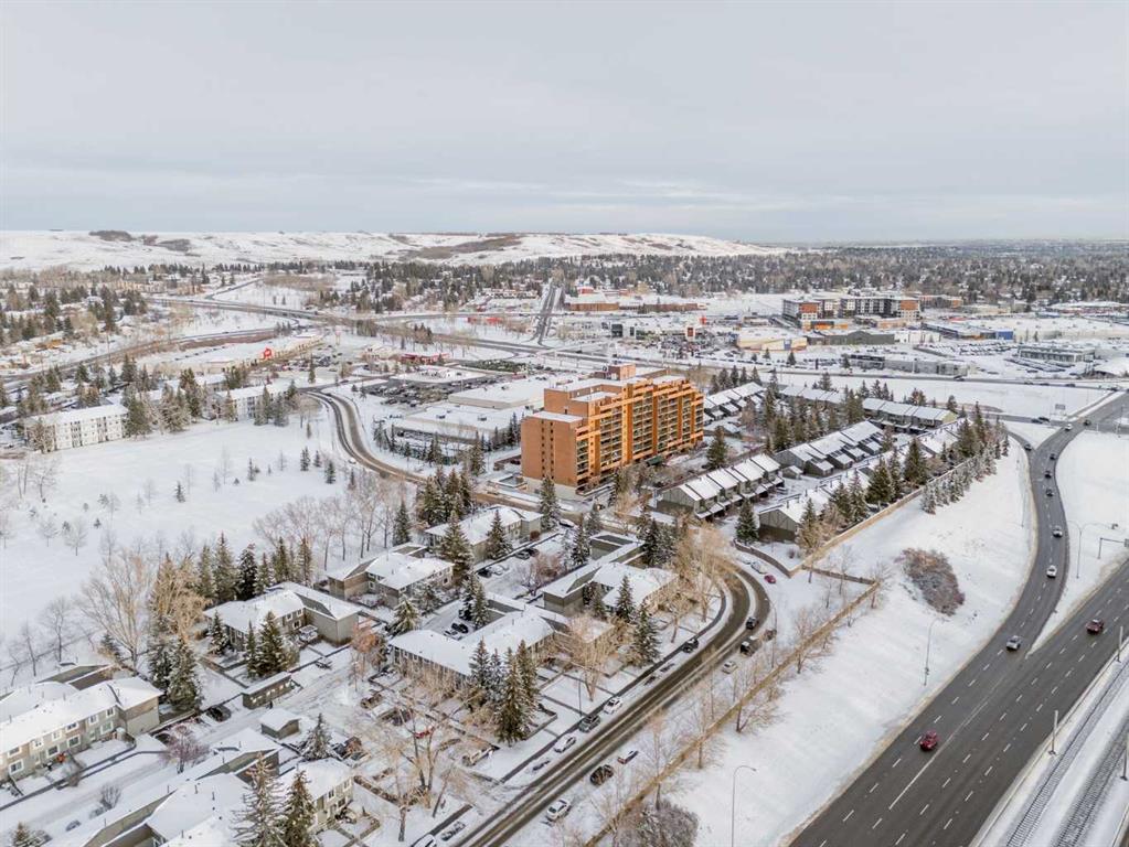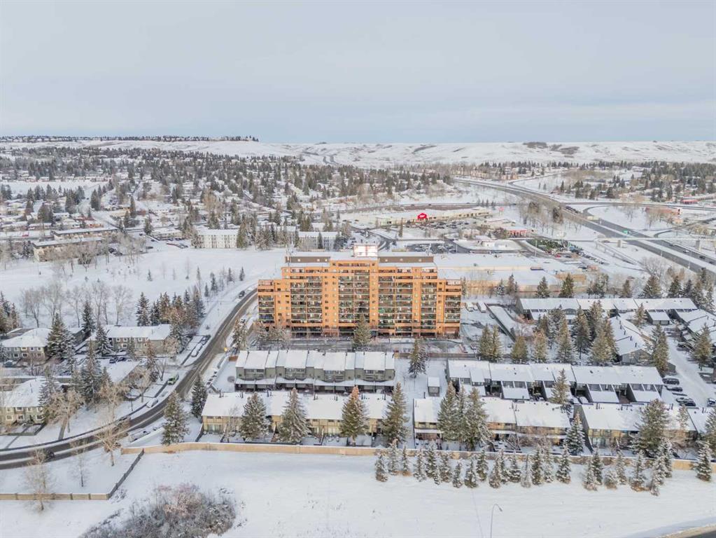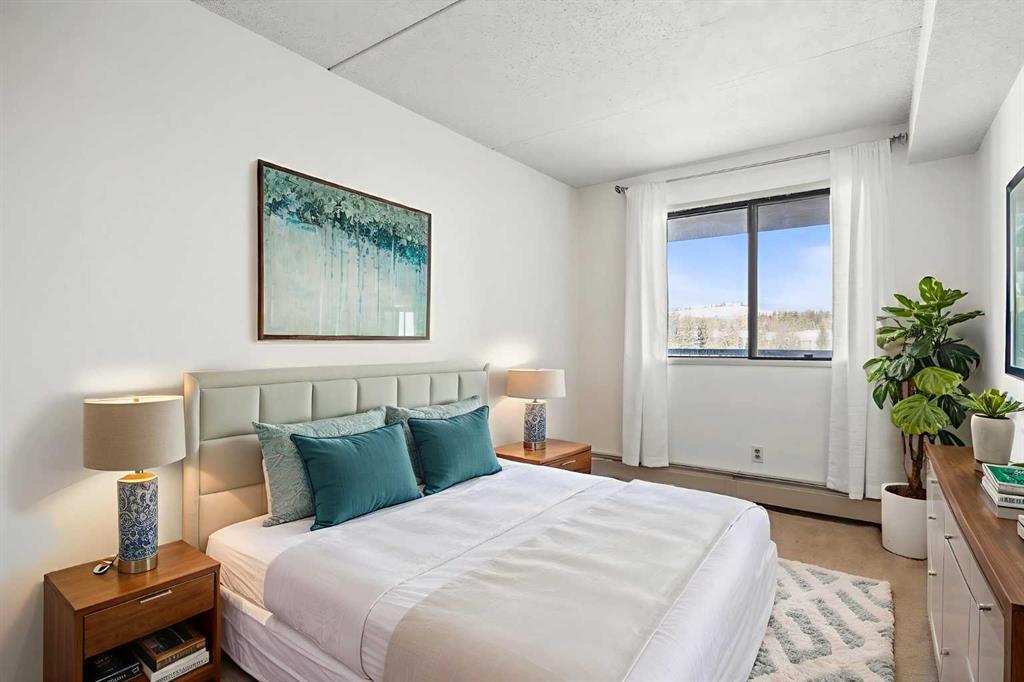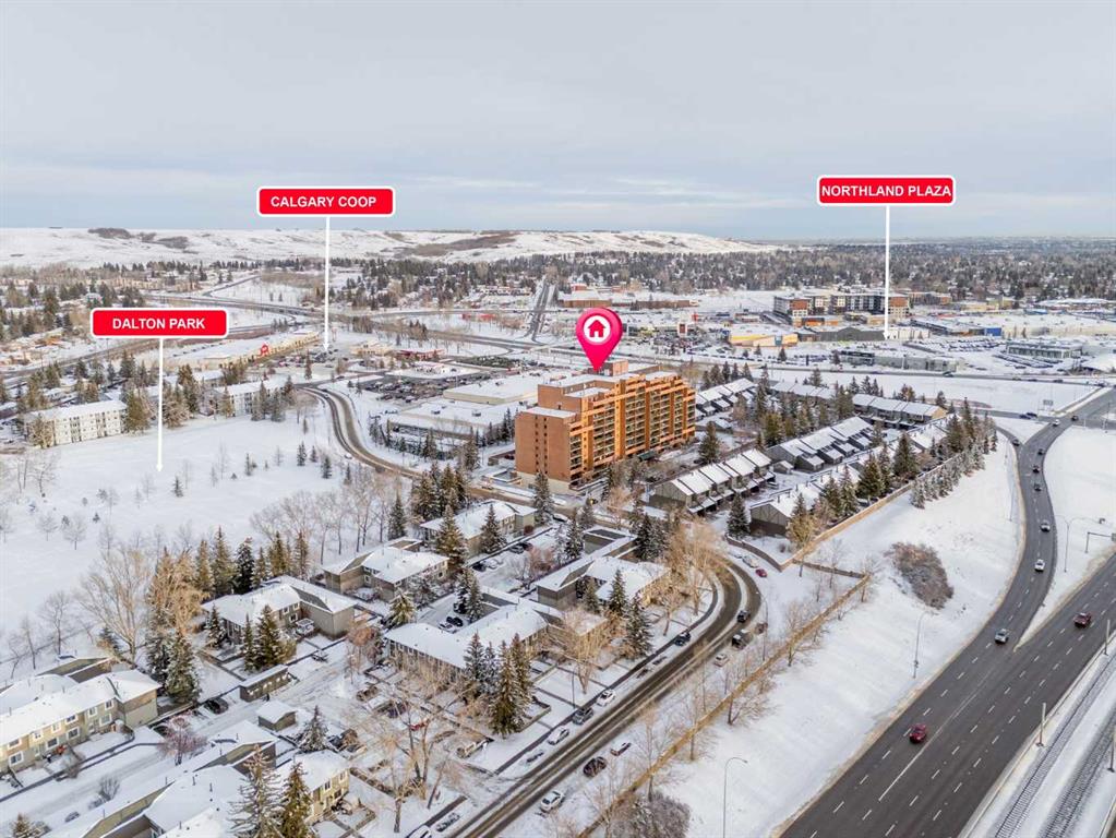 Welcome to this beautifully updated 5th-floor residence in a solid concrete building, ideally located in the highly desirable community of Dalhousie. Offering 869 sq ft of thoughtfully designed living space, this 2-bedroom, 1-bath condo features a spacious, functional layout highlighted by new carpeting and elegant granite countertops throughout. Enjoy peaceful views of the park right from your unit, adding a serene backdrop to everyday living. The expansive kitchen is finished with rich maple cabinetry, stainless steel appliances, and a convenient built-in pantry, seamlessly connecting to the generous living area. From here, step out onto the oversized 20' x 7' balcony, an ideal space for relaxing or entertaining. Abundant in-suite storage further enhances daily comfort and functionality. The building offers an impressive lineup of amenities, including a well-equipped fitness centre with dry sauna, a dedicated party room, games room, library, community garden, secured bicycle storage, underground heated parking, outdoor RV parking and storage available for rent, plus ample visitor stalls in the front of the building. A tennis court located along the side of the building adds even more recreational appeal. A common laundry area is also available for resident convenience. The location is truly hard to beat. The property backs directly onto CO-OP and Canadian Tire, with Northland Mall just across the street offering an excellent mix of retail, dining, and everyday services. A short 15-minute walk takes you to the Dalhousie LRT station, surrounded by Safeway, Starbucks, Earls, and a wide variety of dining options. This central setting makes the property ideal for students, healthcare professionals, and investors alike, with quick access to the University District, University of Calgary, Foothills Hospital, and Alberta Children’s Hospital. For those who enjoy an active lifestyle, nearby amenities include extensive bike paths, Nose Hill Park, Dalton Park, and the Silver Springs Golf and Country Club. Commuters will appreciate the quick access to Shaganappi Trail, Crowchild Trail, Sarcee Trail, and John Laurie Boulevard, all just minutes away. Condo fees truly cover everything, including electricity, heat, water, sewer, insurance, professional management, landscaping and snow removal, reserve fund contributions, and one underground, heated parking stall (#152). With its unbeatable location and comprehensive amenities, this property also presents an excellent investment opportunity with strong rental potential.