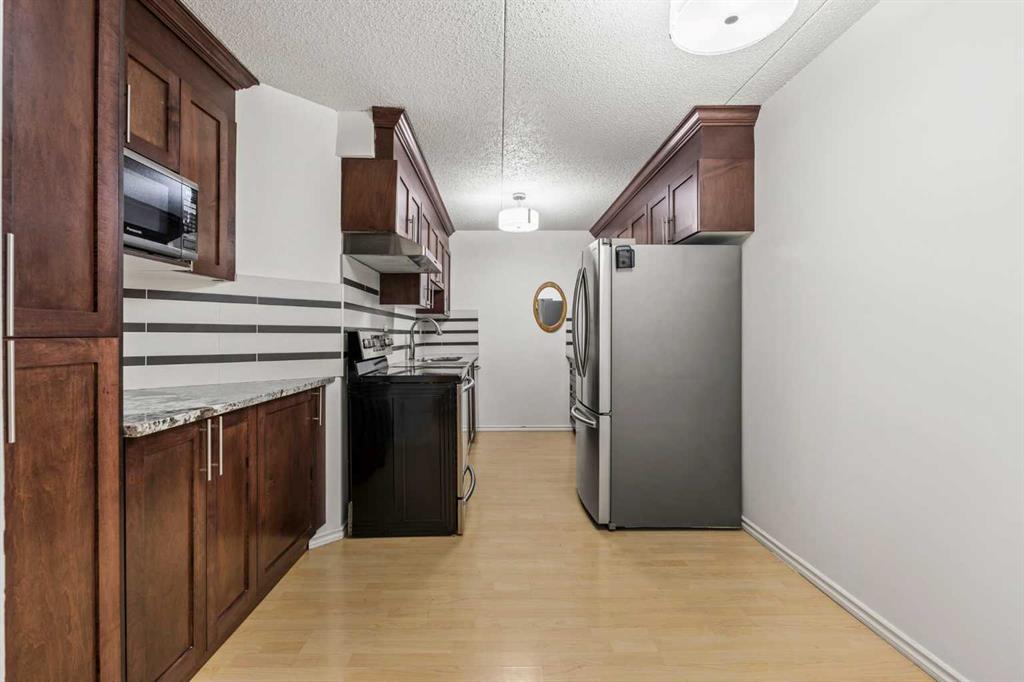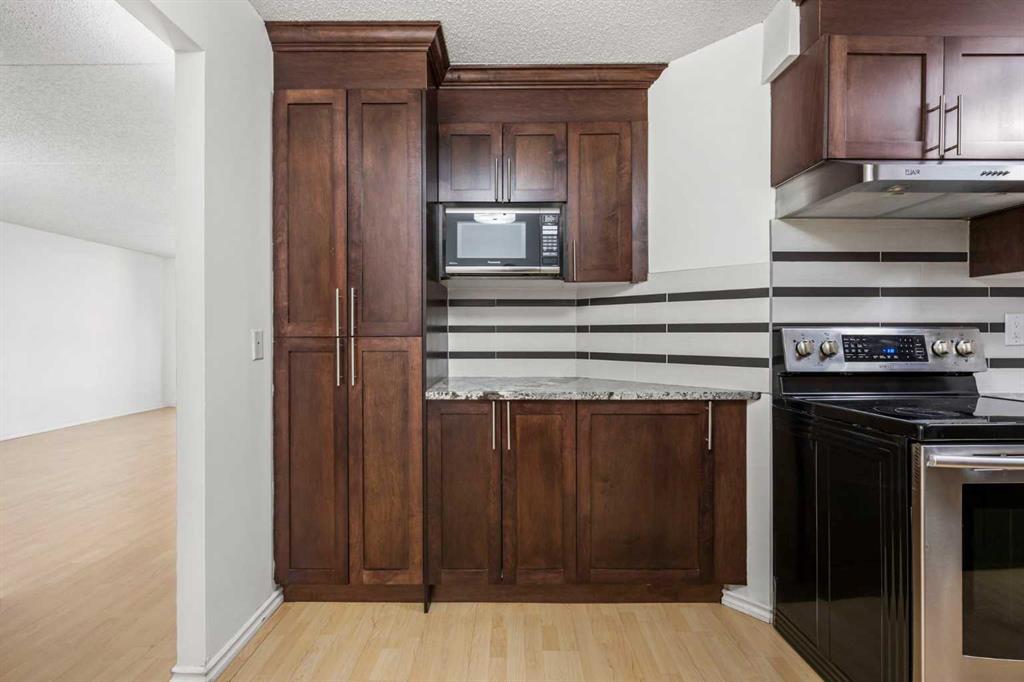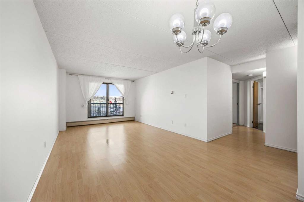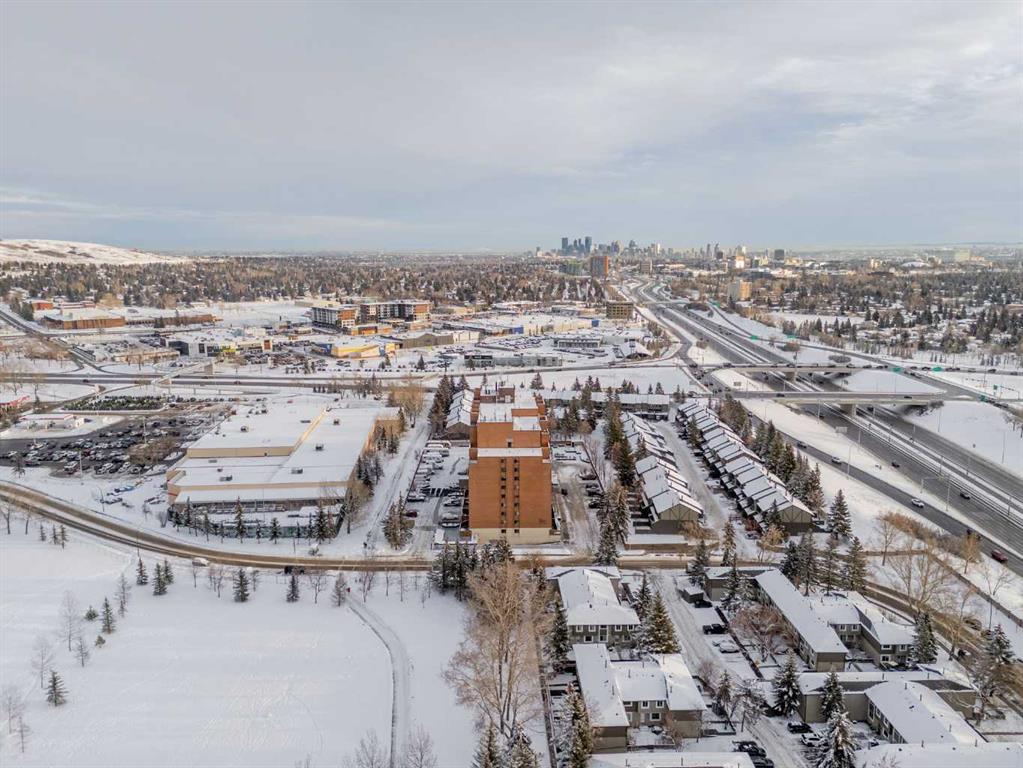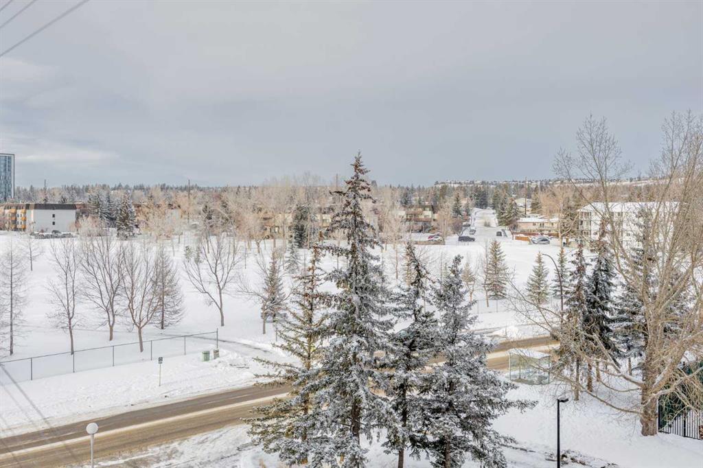 Welcome to this beautifully updated 5th-floor residence in a solid concrete building, ideally located in the highly desirable community of Dalhousie. Offering 869 sq ft of thoughtfully designed living space, this 2-bedroom, 1-bath condo features a spacious, functional layout highlighted by new carpeting and elegant granite countertops throughout. Enjoy peaceful views of the park right from your unit, adding a serene backdrop to everyday living. The expansive kitchen is finished with rich maple cabinetry, stainless steel appliances, and a convenient built-in pantry, seamlessly connecting to the generous living area. From here, step out onto the oversized 20' x 7' balcony, an ideal space for relaxing or entertaining. Abundant in-suite storage further enhances daily comfort and functionality. The building offers an impressive lineup of amenities, including a well-equipped fitness centre with dry sauna, a dedicated party room, games room, library, community garden, secured bicycle storage, underground heated parking, outdoor RV parking and storage available for rent, plus ample visitor stalls in the front of the building. A tennis court located along the side of the building adds even more recreational appeal. A common laundry area is also available for resident convenience. The location is truly hard to beat. The property backs directly onto CO-OP and Canadian Tire, with Northland Mall just across the street offering an excellent mix of retail, dining, and everyday services. A short 15-minute walk takes you to the Dalhousie LRT station, surrounded by Safeway, Starbucks, Earls, and a wide variety of dining options. This central setting makes the property ideal for students, healthcare professionals, and investors alike, with quick access to the University District, University of Calgary, Foothills Hospital, and Alberta Children’s Hospital. For those who enjoy an active lifestyle, nearby amenities include extensive bike paths, Nose Hill Park, Dalton Park, and the Silver Springs Golf and Country Club. Commuters will appreciate the quick access to Shaganappi Trail, Crowchild Trail, Sarcee Trail, and John Laurie Boulevard, all just minutes away. Condo fees truly cover everything, including electricity, heat, water, sewer, insurance, professional management, landscaping and snow removal, reserve fund contributions, and one underground, heated parking stall (#152). With its unbeatable location and comprehensive amenities, this property also presents an excellent investment opportunity with strong rental potential.