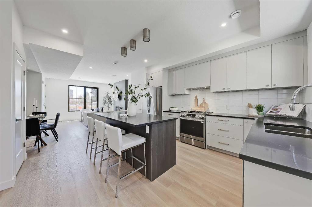 *BRAND NEW TOWNHOME PROJECT COMING TO GLENDALE! STILL TIME TO CUSTOMIZE!* Presenting a brand new 4-unit townhome project in the established Glendale community, offering a rare opportunity to enjoy luxury living without sacrificing space or comfort. Each unit boasts more than 1,600 sq. ft. of thoughtfully designed above-grade space, and a fully developed 1-bed LEGAL BASEMENT SUITE with its own separate entrance. This is a perfect opportunity for long-term rental income (a great mortgage helper!) or easy multigenerational living. Built by the renowned ZENITH GROUP and set for completion in 2026, this extra-wide townhome features high-end finishes, a striking exterior, and a prime SW location close to parks, schools, shopping, and transit. Step inside to soaring 9-ft ceilings, oversized windows, and luxury vinyl plank flooring that fills the main floor with light. A welcoming foyer with a closet leads to an open living room anchored by a sleek gas fireplace and a large picture window overlooking the street. The central kitchen blends style and practicality with quartz countertops, an oversized single-basin sink, stainless steel appliances, including a gas stove, a spacious island with bar seating, and high-end built-in cabinetry with a coffee bar. A dining area overlooks the private, fully fenced backyard, complemented by a rear mudroom and discreet powder room. Upstairs features a bright dual-primary layout with 9-ft ceilings, each bedroom offering a massive closet and ensuite with quartz counters, dual sinks, tiled floors, and a fully tiled stand-up shower with modern matte-black fixtures. A dedicated laundry closet adds convenience. The basement suite includes a private entrance, 8.6-ft ceilings, a sunken 140 sq. ft. patio, a spacious living area, a full kitchen, a 4-piece bath, in-suite laundry, and a large bedroom. The home also includes a single detached garage, a private, fully fenced concrete patio, and additional bike storage lockers. Set in Glendale, a family-friendly neighbourhood with tree-lined streets, excellent schools, parks, and quick access to downtown, this home combines suburban comfort with urban convenience. *Interior photos are sample images taken from past projects. Actual finishes may vary. Mood boards based on planned finishes, but may vary on completion. RMS measurements have been derived from the builder’s plans and may change upon completion.*