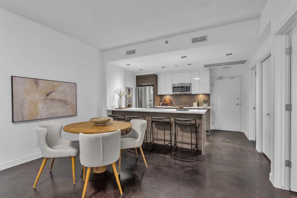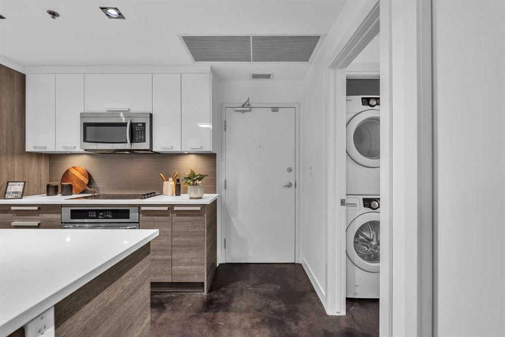 The unit includes a titled underground parking stall and titled storage unit great for sports equipment and winter tires. The PIXEL building provides underground visitor parking, bike rooms, and a truly spectacular rooftop patio with a fireplace, seating areas, and a jaw-dropping panorama of the city — a perfect spot to unwind on a summer evening or to watch the Stampede fireworks. And yes PIXEL is pet friendly with no size restrictions.