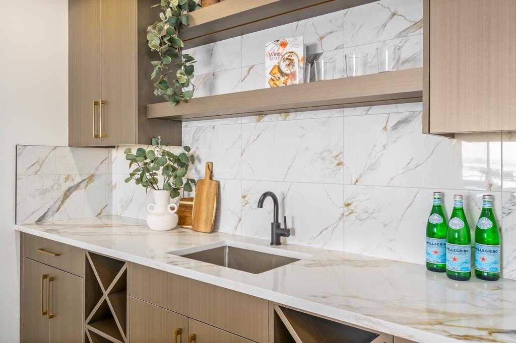 The fully developed walkout basement continues the high-end feel with 9-ft ceilings, luxury vinyl plank flooring, and abundant natural light. A generous family room transitions to a 10-ft wet bar with quartz counters, tile backsplash, under-cabinet lighting, custom cabinetry, and built-in wine storage—an entertainer’s dream. Two bright bedrooms, a full four-piece bath, mechanical room, and storage complete the level. Step outside to a covered concrete patio and landscaped yard with chain-link fencing on the park side and wood privacy fencing along the neighbour’s lot.