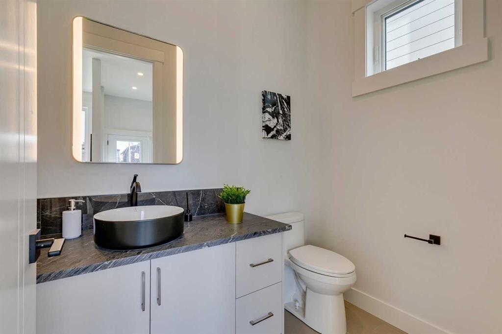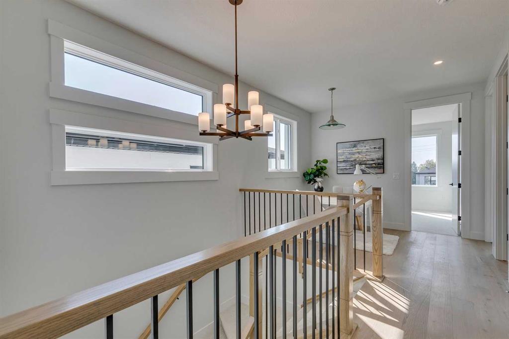 *** SEE THE VIRTUAL TOUR *** Welcome to this stunning brand-new side-by-side duplex located in the desirable community of Banff Trail. With its stylish exterior, the home features a concrete walkway leading to the house, along with concrete stairs at both the front and back, and a spacious concrete patio in the backyard. For safe and easy access to the basement through side door, the side of the house is all concrete without any window well on the way. Step inside to find a welcoming foyer that opens into a large living area, where a two-sided see-through fireplace elegantly separates the living room from the dining area. The modern kitchen is equipped with sleek cabinetry, stainless steel Bosch appliances, and a luxurious granite leather island and countertops. The main floor also includes a beautiful powder room and a convenient mudroom leading to the backyard. Upstairs, you'll discover a generously sized master bedroom complete with a walk-in closet and a stunning modern ensuite bathroom featuring a double vanity, standalone tub, tiled floors, quartz countertops, and a beautifully tiled shower. Additionally, the second floor hosts two other spacious bedrooms and a cozy loft, perfect for an office space or play area for the kids. The laundry room is conveniently located upstairs, alongside the main bathroom, which also boasts a double vanity, tiled floors, and quartz countertops. Hardwood flooring graces the main floor and the hallway of the second floor and the master bedroom. The basement features a separate entrance leading to a legal suite with two bedrooms, a separate furnace, and LVP flooring throughout. This suite includes a full kitchen with quartz countertops and stainless steel appliances, as well as a complete laundry setup, making it an ideal income generator while you enjoy luxurious living upstairs. In all vanities, LED mirrors are installed with 3 color temperatures selection (3000-4000 and 5000), all dimmable to 10% of the normal light and anti fog functionality. Some of the ceiling lights such as master bedroom have 3 color temperature option. Additional highlights include a double detached garage, 10-foot ceilings on the main floor and 9-foot ceilings on the second floor and basement, two furnaces, a 75-gallon hot water tank, rough-ins for AC and central vacuum, soundproof insulation, soundbar and fire rated drywall on the basement ceiling and a soundbar in the party wall.