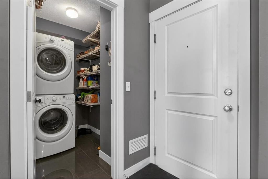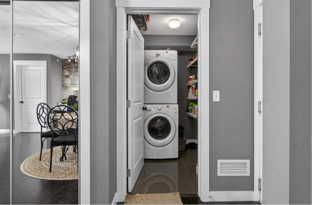 Some homes simply resonate the moment you step inside. This thoughtfully curated 2 – bedroom, 2–bathroom top–floor unit in Skyview Ranch blends style and substance effortlessly, with every room crafted for comfort, natural light, and connection. Morning sunshine streams through the patio doors, bathing the open-concept living area in a gentle glow. From the living room, sliding glass doors usher you onto a generous balcony overlooking the mountains, where you can savor outdoor meals all summer long. The spacious kitchen, framed with full-height cabinetry and refined finishes, feels both grounded and welcoming, including quartz countertops, stainless steel appliances, in-suite laundry, cork flooring, and carpet. A modern light fixture anchors the dining area, perfectly centering your dining table. A built-in desk area is nestled between the dining and living rooms, offering a convenient place for remote work or school assignments. Both bedrooms are ample and finished with luxurious carpeting. The primary bedroom boasts a walk-through closet that opens into a private 4-piece ensuite with a tub/shower combo. The second large bedroom on the far side of the unit is served by an adjacent 4-piece bath. The in-suite laundry is a welcome convenience and provides sufficient storage. This condo also includes the convenience of a titled underground parking stall, along with an additional storage locker located in front of the stall, perfect for seasonal items. As a resident of Skyview Ranch, you’ll enjoy an unbeatable lifestyle with access to schools, shopping, restaurants, parks, and excellent transportation routes, making commuting easy. With quick access to Stoney Trail, Deerfoot Trail, CrossIron Mills, Amazon shipping depot, and The Airport. You’ll be well-connected to go anywhere you want to explore. Schedule your showing today!