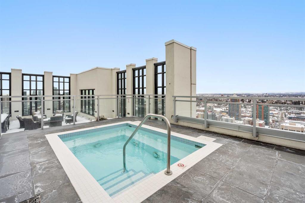Additional luxuries include one titled heated underground parking stall, an assigned storage locker, and access to some of the most impressive amenities in the city. Mark on 10th offers a full-time concierge, a tranquil third-floor garden terrace, a state-of-the-art fitness centre, cedar sauna and steam room, a guest suite, and a stunning two-storey rooftop lounge with entertainment areas, workstations, pool table, and a breathtaking rooftop hot tub with panoramic views extending to the Rocky Mountains.