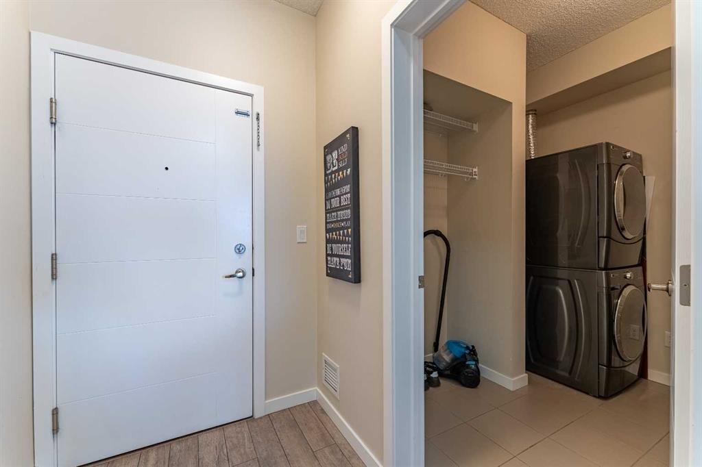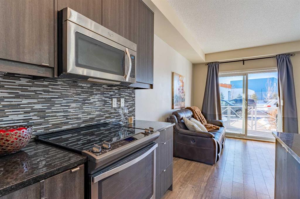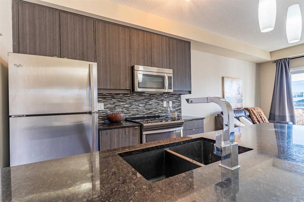 Experience the ultimate lakeside lifestyle in this stunning 2-bedroom, 1-bathroom main-floor condo located in the highly sought-after Ebony Apartments in Mahogany. This bright and functional residence is an exceptional opportunity for first-time buyers, downsizers, or investors looking for a home that perfectly balances comfort, value, and convenience. As you step inside, you are greeted by an inviting open-concept floor plan elevated by soaring 9-foot ceilings and flooded with natural light, creating a spacious atmosphere that is perfect for entertaining. The modern chef-inspired kitchen serves as the heart of the home, featuring full-height cabinetry, sleek granite countertops, and a stylish tile backsplash. The extended kitchen island offers additional seating and is highlighted by chic pendant lighting, all complemented by a full suite of premium stainless steel appliances. The airy living room flows seamlessly to a generous covered patio, which comes equipped with a BBQ gas hook-up, making it an ideal spot for year-round outdoor relaxation. Both the primary and secondary bedrooms provide flexible space for guests or a home office and share a well-appointed 4-piece bathroom. For added convenience, the unit includes an in-suite laundry room, dedicated storage space, and a titled parking stall, with plenty of visitor parking just steps from your door. Residents of Ebony enjoy exclusive access to incredible on-site amenities, including a private fitness center, bike storage, and a children’s playground. Living in Mahogany means more than just a beautiful home; it grants you unparalleled access to Calgary’s premier lake community where you can enjoy swimming, boating, and fishing. You are perfectly positioned just moments away from the Mahogany Village Market, offering a vibrant array of shopping, dining, and daily essentials. With quick access to transit and Stoney Trail, this low-maintenance home provides a seamless connection to the rest of the city while maintaining a tranquil resort-style feel. Don’t miss your chance to own in one of Calgary’s most desirable neighborhoods—book your private showing today and start living the lake life you’ve always dreamed of.