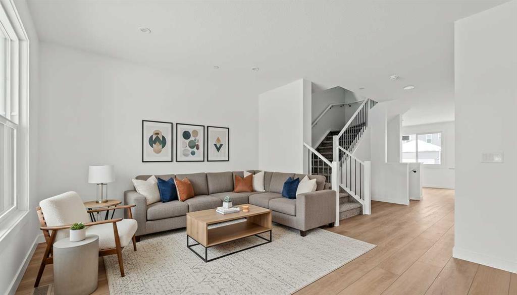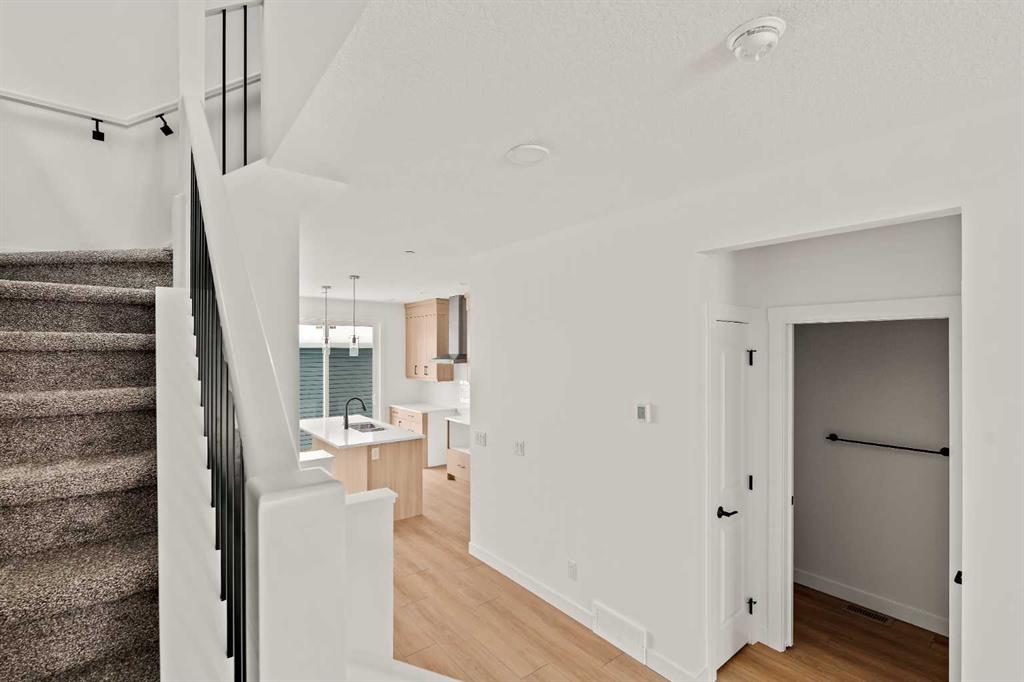 Discover the comfort and ease of modern living in this beautifully crafted Wicklow model by Brookfield Residential, perfectly placed in the vibrant community of Livingston and ready for immediate possession. Thoughtful design and smart use of space define this nearly 1,700 sq. ft. home, offering 3 bedrooms, 2.5 bathrooms, an undeveloped basement with a separate side entrance, and a private single garage with an added parking pad. The main floor welcomes you with 9' ceilings that create an open, airy feel from room to room. The kitchen is both stylish and functional, featuring a built-in chimney hood fan, built-in microwave, and plenty of counter space for cooking and gathering. It flows effortlessly into the dining area, where patio doors extend your living space to the backyard, ideal for future summer evenings and weekend barbecues. At the front of the home, the bright great room showcases large windows that bathe the space in natural light, offering a warm and inviting setting for everyday relaxation. Upstairs, the layout has been designed with balance in mind. A central bonus room sits between the primary suite and the additional bedrooms, giving everyone a little more breathing room. The primary suite includes a generous walk-in closet and a polished 4-piece ensuite with dual sinks and a walk-in shower. Two additional bedrooms, a full bathroom, and a conveniently located laundry room complete the upper level with ease. The basement has direct access via a side entrance and is undeveloped but includes rough-ins for easy developemnt. Outside, the backyard leads to your single detached garage and extra parking pad, offering practical solutions for storage, vehicles, and guests. Peace of mind comes standard with coverage from both Brookfield’s builder warranty and Alberta New Home Warranty. If you’re looking for a fresh, well-planned home in a growing, amenity-rich neighbourhood, this Wicklow model brings comfort, style, and everyday functionality together in one appealing package.