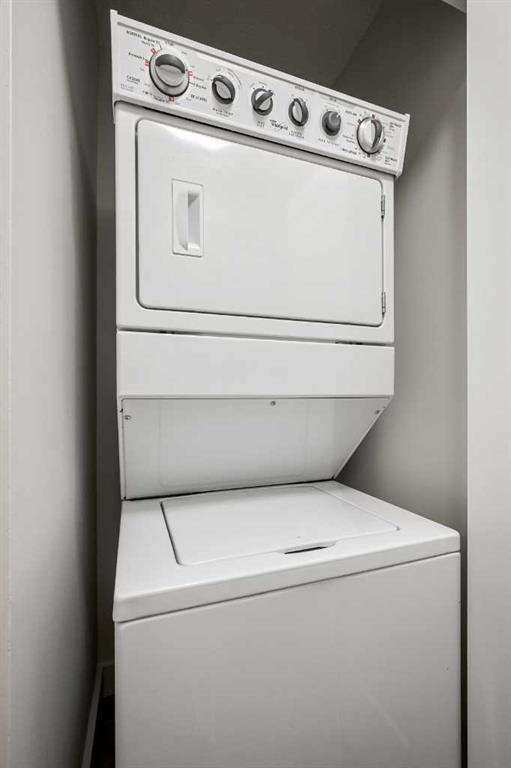 A sunny southeast exposure fills the home with natural light throughout the day and opens onto a spacious balcony where downtown skyline views become part of daily living. Whether enjoyed as a quiet morning coffee spot or an evening retreat, the outdoor space adds meaningful value rarely found in apartments of this size. An assigned parking stall further enhances day-to-day convenience, particularly for owners or tenants seeking flexibility in an inner-city setting.