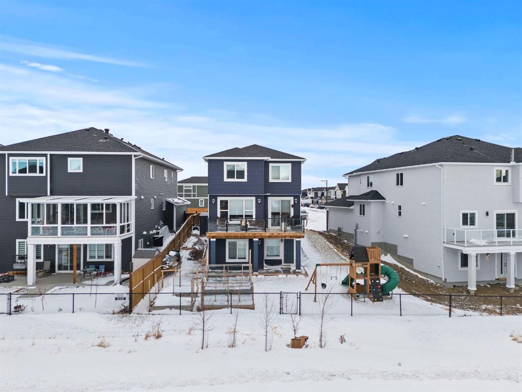 Welcome Home. This stunning two story walkout is only 3 years old and has been thoughtfully designed and upgraded. Tucked away on a quiet street, backing directly onto a green space and playground, in one of Chestermere’s most sought-after communities. This home offers the kind of setting families dream about. From the moment you arrive, the curb appeal stands out with its exposed aggregate driveway, and Gemstone lighting that adds year-round elegance. The main level features a bright, open-concept layout designed for both everyday living and entertaining. The kitchen is the heart of the home, featuring sleek cabinetry with custom lighting and soft close hinges, elegant granite countertops, a stainless steel appliance package, perfect for busy mornings and weekend entertaining offering space and functionality. The warm and welcoming living room is complete with a stylish mantle feature and large windows allow beautiful sunlight to flow into the space from the west facing back yard. Upstairs, the large central bonus room provides space and comfort for you to relax and unwind or have some fun family time. The primary retreat delivers both comfort and style with an ensuite that includes a deep soaker tub, dual sinks, and a beautifully tiled glass shower as its standout feature. The generous walk-in closet offers space for all your storage needs. The 2 Secondary bedrooms are well sized, and the layout offers excellent flow for families of all stages being finished off with a functional laundry room. The builder-finished walkout basement is a major bonus with permits allowing peace of mind. The spacious rec room adds flexible living space with potential for a future home theatre, thanks to the ceiling-mounted projector rough-in. A 4th bedroom, full bathroom and extra storage space complete this walkout level. The mechanical systems are top-tier, including a 75-gallon hot water tank, HRV system, and high-efficiency furnace, ensuring long-term comfort and reliability. Step outside and enjoy one of the home’s biggest highlights: a sunny west-facing backyard that feels like your own private park. Professionally landscaped with lush grass, garden beds that are perfect for the gardening enthusiast, and an extended upper deck with aluminum and glass railing, this yard is designed for relaxing, hosting, and soaking in those beautiful open views of the green space behind. The double attached garage offers parking for two vehicles, a rough-in for an EV charger in the garage and a custom built-in storage loft. Additional features are a 4-ton A/C (with cover), Supreme security system with doorbell and outdoor cameras and strategically placed Wi-Fi boosters for seamless connectivity. Living in Chelsea means being close to everything—schools, pathways, shopping—and only minutes from Calgary and the ring road for easy commuting. Chestermere Lake is nearby for boating, paddleboarding, and sunny afternoons. Book your private showing and experience what makes this property so special.
