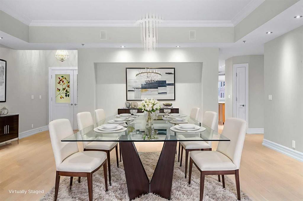 For those who value excellence, this distinctive executive residence in the Princeton Grand, a name synonymous with exclusivity, privacy, and luxury, is set amidst the most desirable residential enclave in Eau Claire. Your lifestyle will appreciate the opulent convenience of a private in-suite elevator coupled with exceptional amenities including 24 hour dedicated concierge, temperature controlled wine room with private storage lockers & tasting room, events area with full kitchen, TV’s and terrace, 2 private guest suites, a fully equipped fitness centre, yoga centre, steam room, dry sauna, showers, change room with lockers, full kitchen & bathroom, full service U/G car wash bay, bicycle storage, and a separate freight elevator. The beautifully manicured grounds create a private park-like setting, nestled along the south bank of the Bow River next to beautiful Prince's Island Park and incredible Pathway System! Walking distance to office towers, shopping, entertainment, restaurants, +15 skywalk system, transportation and the LRT, Peace Bridge, Kensington Shops and Calgary's vibrant City Center. Presenting a rare offering of 2892 sq.ft. of harmoniously appointed living space displaying the highest level of craftsmanship and luxurious interior tailoring, with pride of ownership complimenting the timeless prairie palette that flows seamlessly throughout the integrated floor plan that embraces the stunning backdrop of the Bow River. This exceptional luxury residence features a private elevator for the ultimate in convenience which opens to your stylish and spacious foyer, and then presents an exceptionally open entertaining floor plan, large floor to ceiling windows that provide exceptional natural light, with the open concept living/dining areas overlooking the private treed views to the Bow River. The master quarters overlooks the river and offers a large walk-in closet, relaxing, sensual 5 piece spa inspired ensuite with heated floors, a convenient office area and direct access to the expansive north terrace overlooking the Bow River and Prince's Island. The very private second bedroom is totally secluded from the living areas. The bright professional-grade gourmet kitchen was designed as the epicenter of the space with direct access to the south terrace, coupled with the north terrace can accommodate gatherings of all sizes. This peaceful and park-like setting offers two spectacular and spacious outdoor living spaces, a stunning 680 sq ft covered deck overlooking the mature trees and Bow River to the north, and a second sunny south facing covered balcony off the kitchen and family room, great for year round BBQs. An exceptional floor plan that's perfect for entertaining. Home includes built-in speaker system, vacuum system, a wine fridge, 1 gas fireplace, high ceilings, lge bright windows, 2 titled parking stalls and titled storage locker. Enjoy your refined lifestyle against a backdrop of luxury services, finishes and accoutrements in the Princeton Grand.