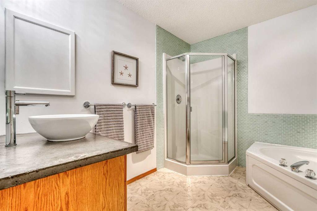 Upstairs, you'll find a very large primary bedroom with a custom feature wall, a second well-sized bedroom, and an updated 4-piece bathroom complete with a large corner soaker tub. A bright loft area offers the perfect spot for a home office, reading nook, or additional family lounge space.