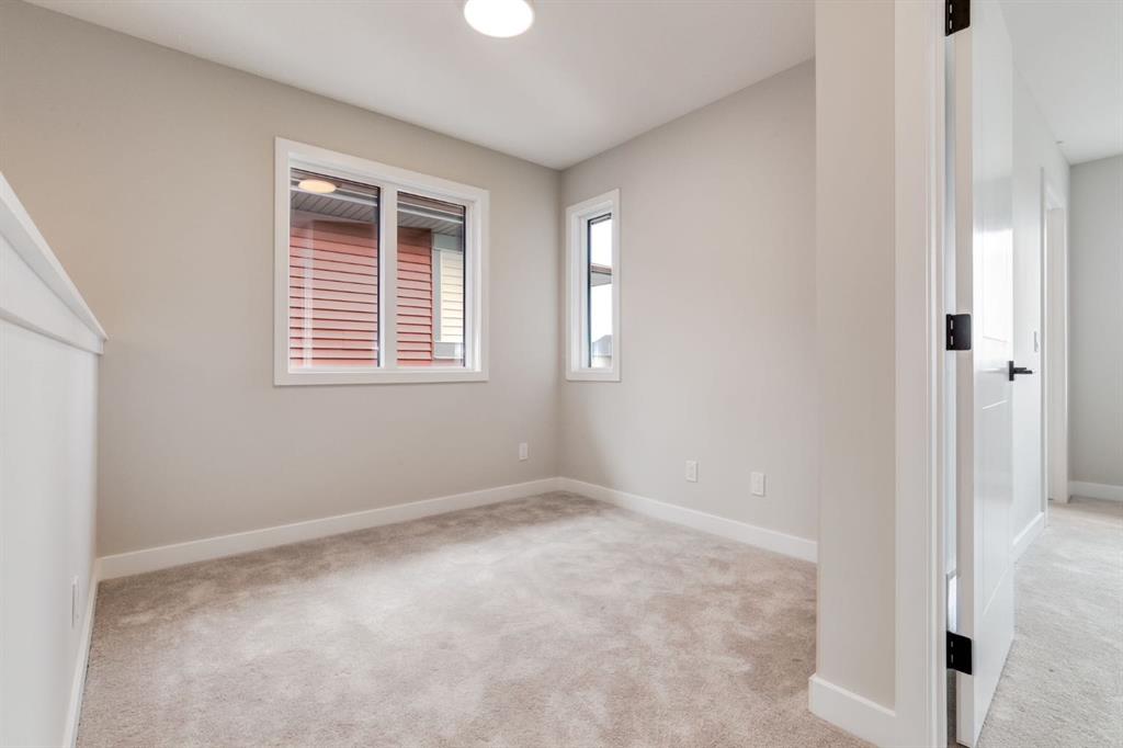 QUICK POSSESSION! Brand new The "LANDON" half duplex by Rohit Homes, with unmatched design interiors and striking exteriors to create elevated living. Featuring 1,617 sq ft, 3 bed/2.5 bath + bonus room, double front attached garage and separate entrance to basement. Note: this unit will be ready for possession in 2026. All Perfectly located In SE Calgary's 'Sora in Hotchkiss', close to a park, featuring a pond, paths, easy access to major highways and more. Step inside to an expansive open floor plan that seamlessly connects living/dining and kitchen. KITCHEN FEATURES: SS appliances, quartz counters, large island (with place for bar stools), designer cabinets, boutique lighting - a perfect place to gather and create masterful meals. Off the kitchen is the dining, mud room, living room and half bath. The plan offers large windows across the back, and with the high ceilings as well as open floor plan, it leaves the home feeling bright and inviting. Upstairs, find 3 good size bedrooms, bonus room, laundry, 2 full baths. The primary retreat includes a walk in closet, and spa like retreat full en-suite. Ensuite features: Single vanity, window, bath/shower combo, quartz counters and beautiful tile work. The lot features alley access in the back. Located just outside the ring-road, east of Stoney Trail, offering quick access to highways and other amenities on the southeast side of Calgary. All pictures and 3D tours are of the floorpan that is completed, your unit may have different (colors/finishings/spec upgrades/design interior/elevation) depending on Lot - confirm with builder. At Rohit Homes, we know it’s not just about having a functional floor plan, it’s about having a space that you’re proud to show off. Each of our homes features a distinct look that is inspired by you - our customers. Built by a 4-time Home Builder of the Year with Peace-of-mind 1-2-5-10 year new home warranty. Unparalleled level to townhome living awaits. Note: The listed price includes GST - The First-Time Home Buyers' GST Rebate could save you up to $50,000 on a new home! You must be 18+, a Canadian citizen or permanent resident, and haven't owned or lived in a home you or your spouse/common-law partner owned in the last four years. Terms and conditions are subject to the Government of Canada/CRA rules and guidelines. *Visit show home at 318 sora way SE Calgary mon-thurs 4-7pm, sat/sunday 2-5pm. Self guided tours available outside those times!